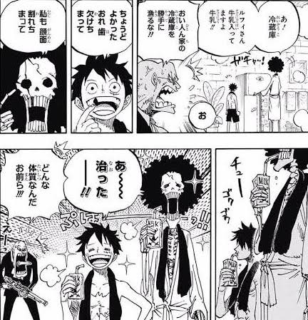 個人的にはどう見ても物語いうか世界観の核心に迫る位置付けのキャラだから、今週の内容は良い意味でゾクッときた。まぁアーロン編で「丸ごと身体が海に沈んだのにゴムの性質は維持されていた」「同様に海に沈んだ動物系のチョッパーは人獣型になっていた」というところはあったんだけどね