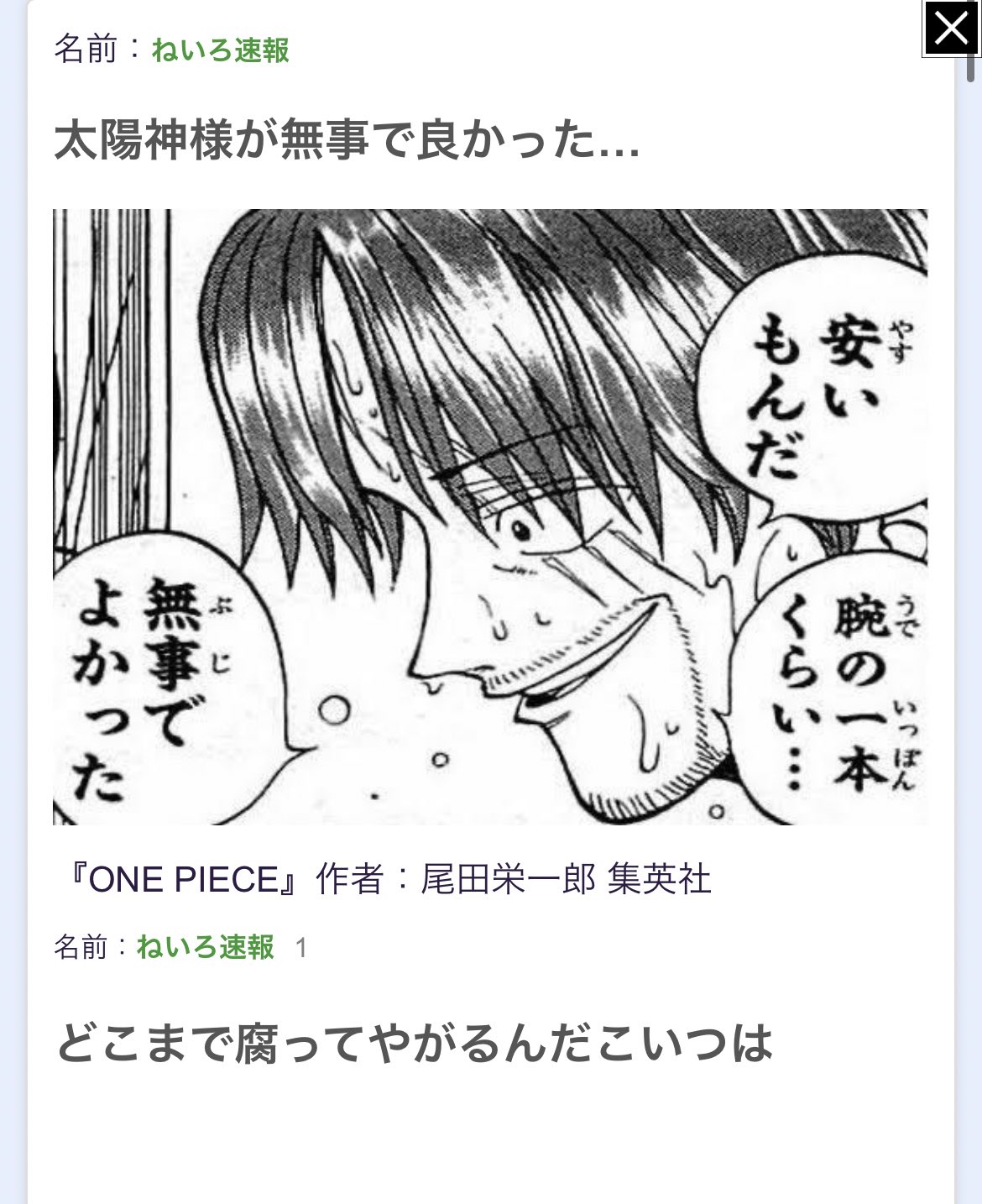 尾田先生がは自筆でONEPIECEと書くときは絶対にOの中にバッテンを書くって話も意味深に思えてきたな>>968
