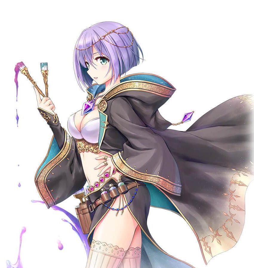 絵に描いたものを具現化させる絵画魔術という特殊な魔法を使う元宮廷画家だが、重度のロリコンで仕事そっちのけで幼女の絵を描いてたせいでクビにされたと語っており、それから大道芸的に流れの絵描きをやってる中で冥王(主人公)にスカウトされたとのこと