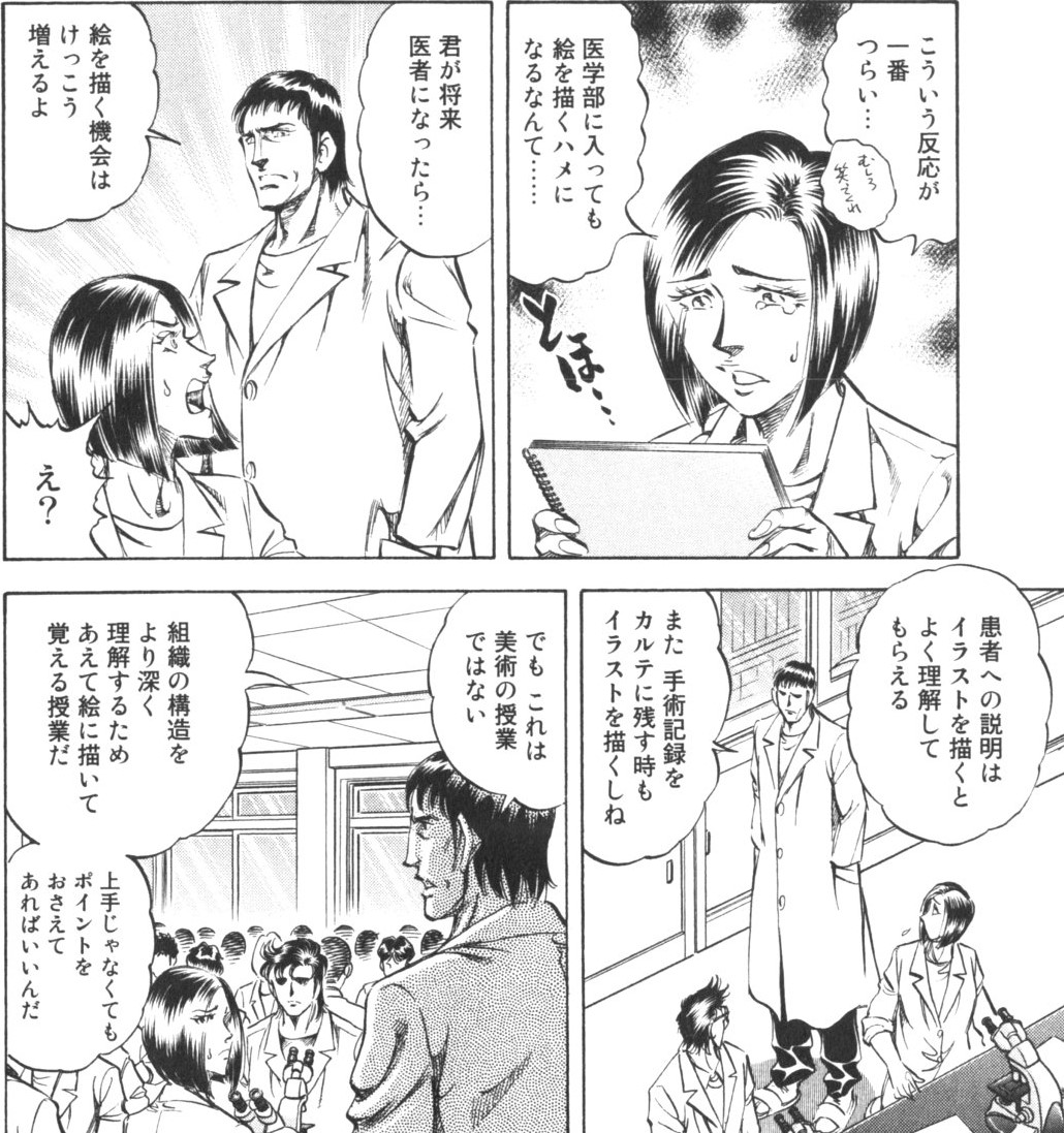 解剖学の授業でスケッチさせられるからね。絵描きも大体の筋肉や骨は覚えているけど、医師は全てを覚えなきゃいけないし、それを最低でも母国語と英語の両方で覚えるから大変だ