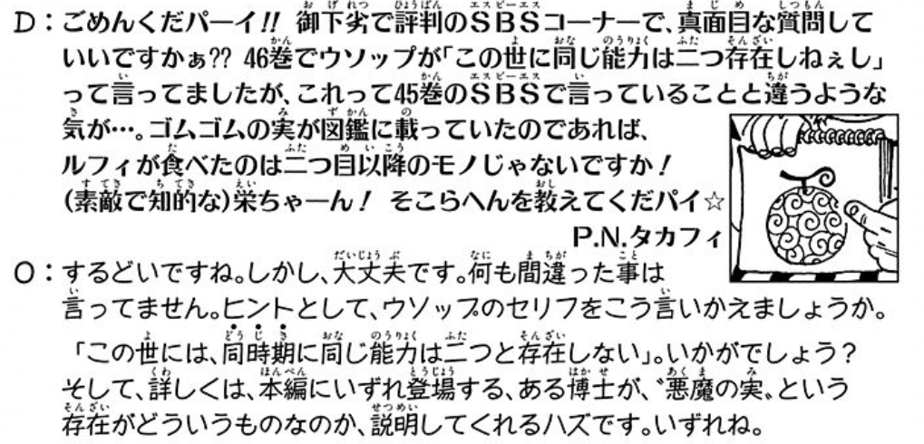 ティーチがヤミヤミの実を食べる為にサッチを殺.した時のいきさつを話した時に「はずみさ、この実はオレを選んだんだ!」って言ってたけど、もしかしたらヤミヤミの実自体も本来は動物系幻獣種で、固有の意思があって敢えてティーチを選んだ可能性もあったりする?>>900