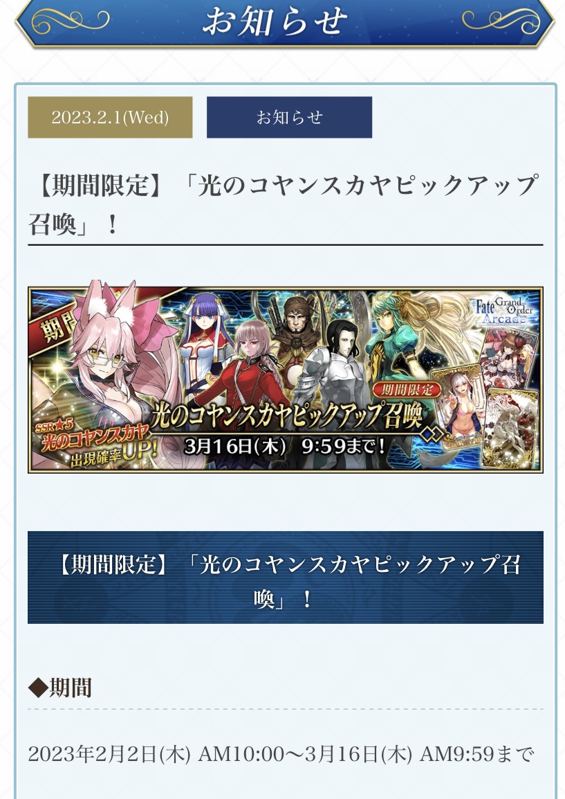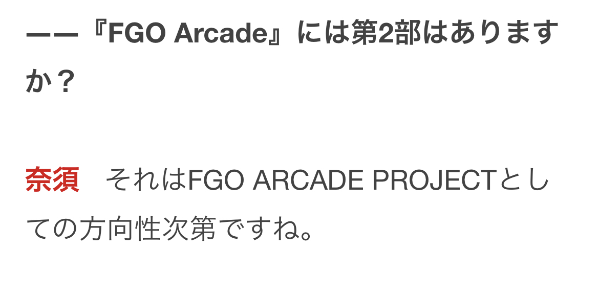 他のアケゲー触ってる勢だけど、真にサ終を心配するタイミングは新規礼装の追加終了が明言された時だと思うよ