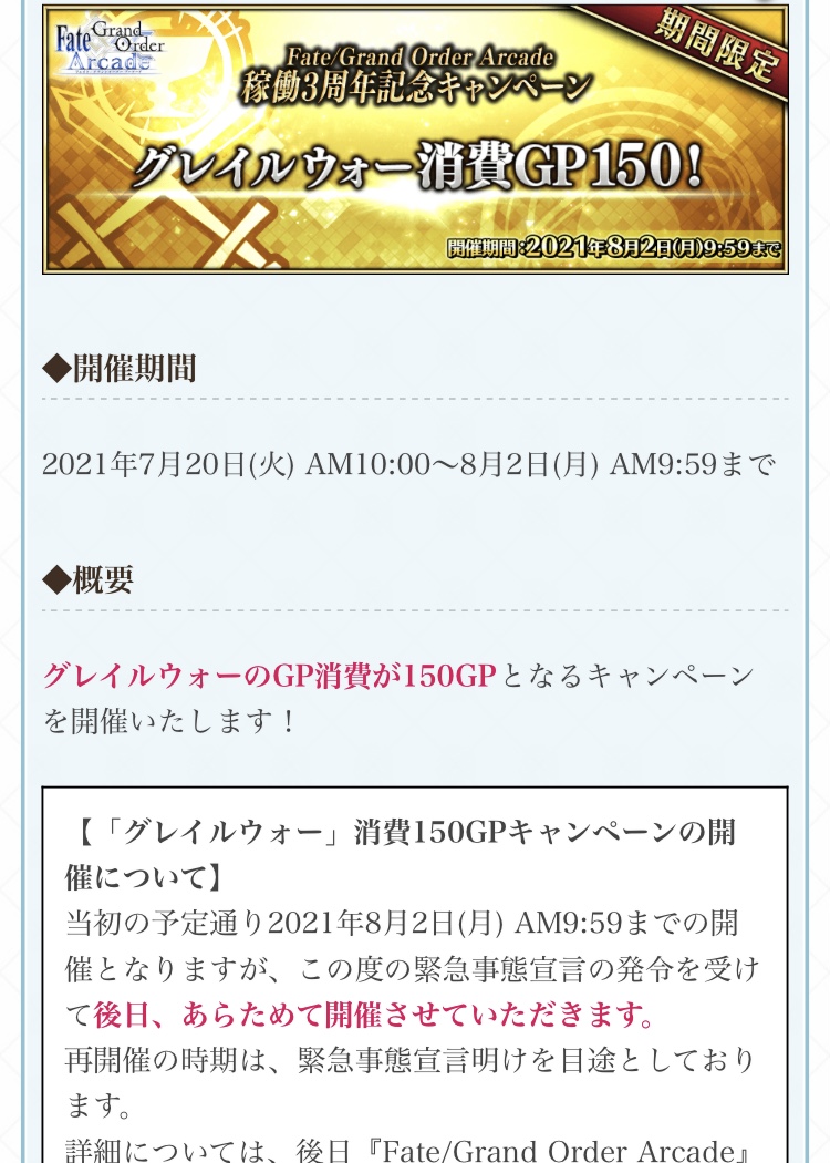 アーケードでこのタイミングでこの声明ならむしろ新規イベントを6〜7月に始めているんじゃないかな。