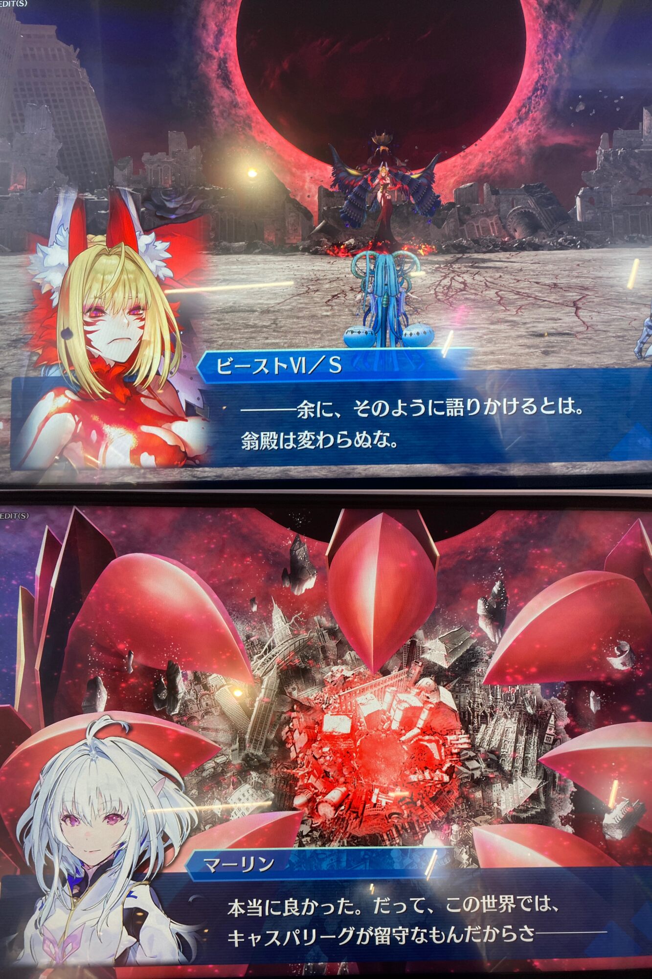 「よくビーストⅥを倒したね!えらいえらい!…さて、いきなりだけどキミ達にいい知らせと悪い知らせがあるんだ どっちから聞きたい?」