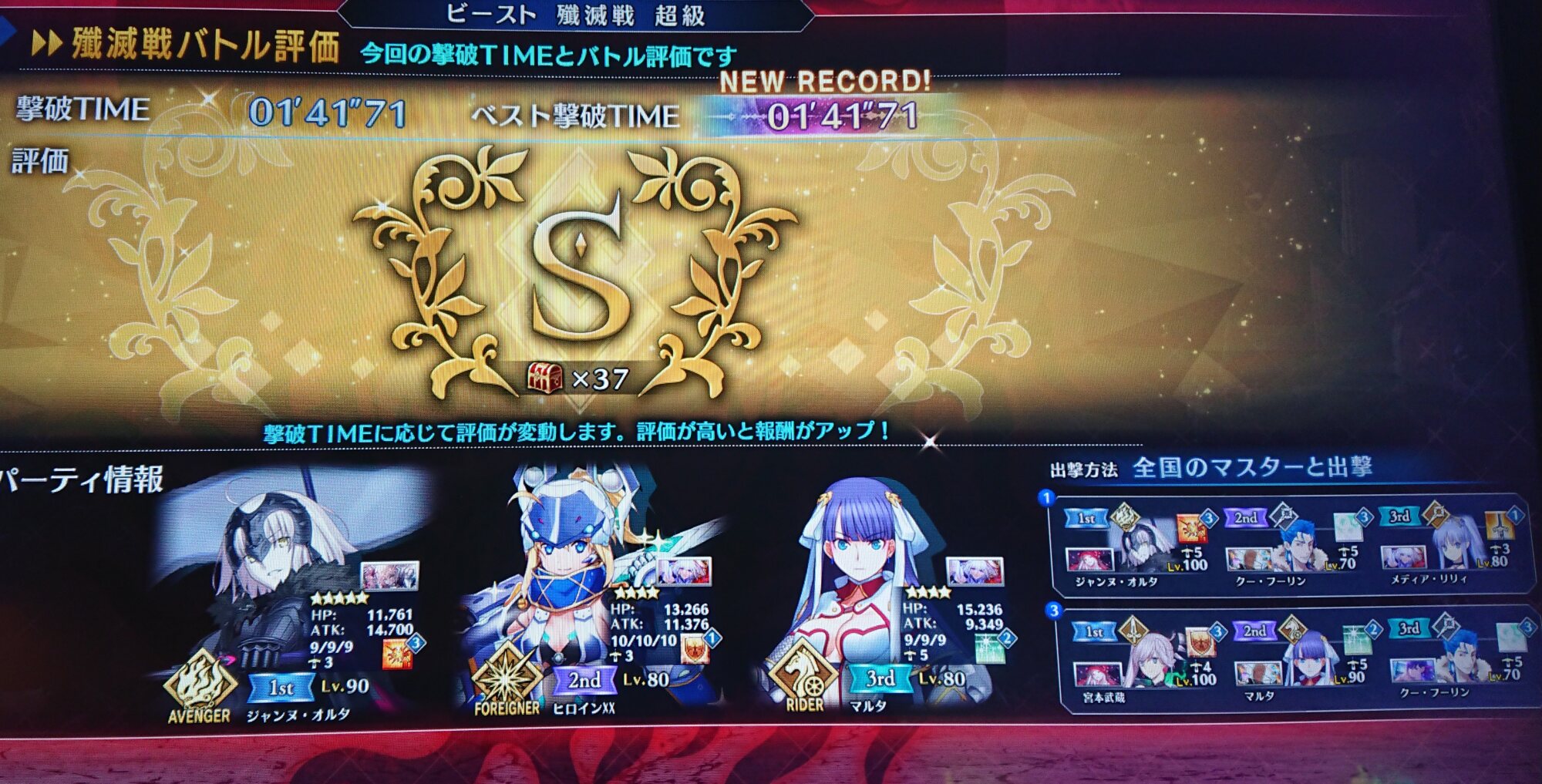好きでエルキドゥ使ってるけど流石に1分台目指すにはextraクラスじゃないと無理っぽいすね。それか宝具連写できるイリヤかな?まだ殲滅戦後のシナリオに登場する可能性もあるし、何か作中で込み入った事情があるのかもしれないが、プロトマーリンは異世界から駆け付けくれたのは大変ありがたいんだけども、ならビーストⅥ退治してきてねって君が送り出したプロトセイバー君も連れてきてやってくれよ…とは思わなくもない