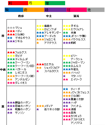 全人類か自分の好き好みで秩序善だけかの違いカルデアに新たに来る魔術師たちはみんな濃いキャラないいな。個人的にはスバロボのエルデやユキムラのようなキャラにしてほしい