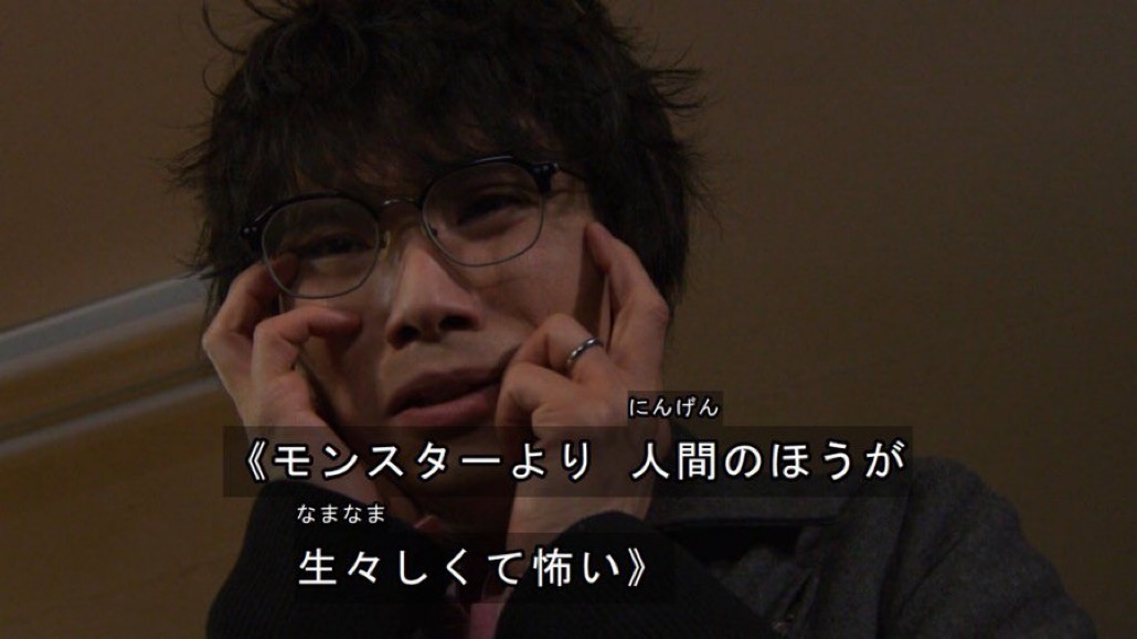 主人公陣営が倒せば人間に戻る怪人(人間から変貌)がいるんだが撃破する寸前に妨害して第3陣営(こいつが怪人を倒すと人間に戻ることなく消滅)が倒すように仕向けたんだパズル