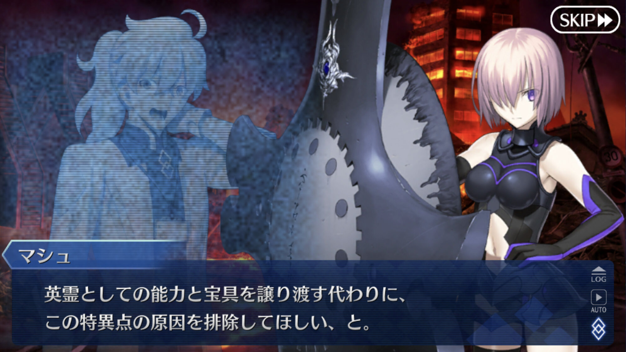 ギャラハッドの影鯖を使う予定だった、そもそもマシュが自分と融合してる鯖だと思ってなかった、とか?>>887