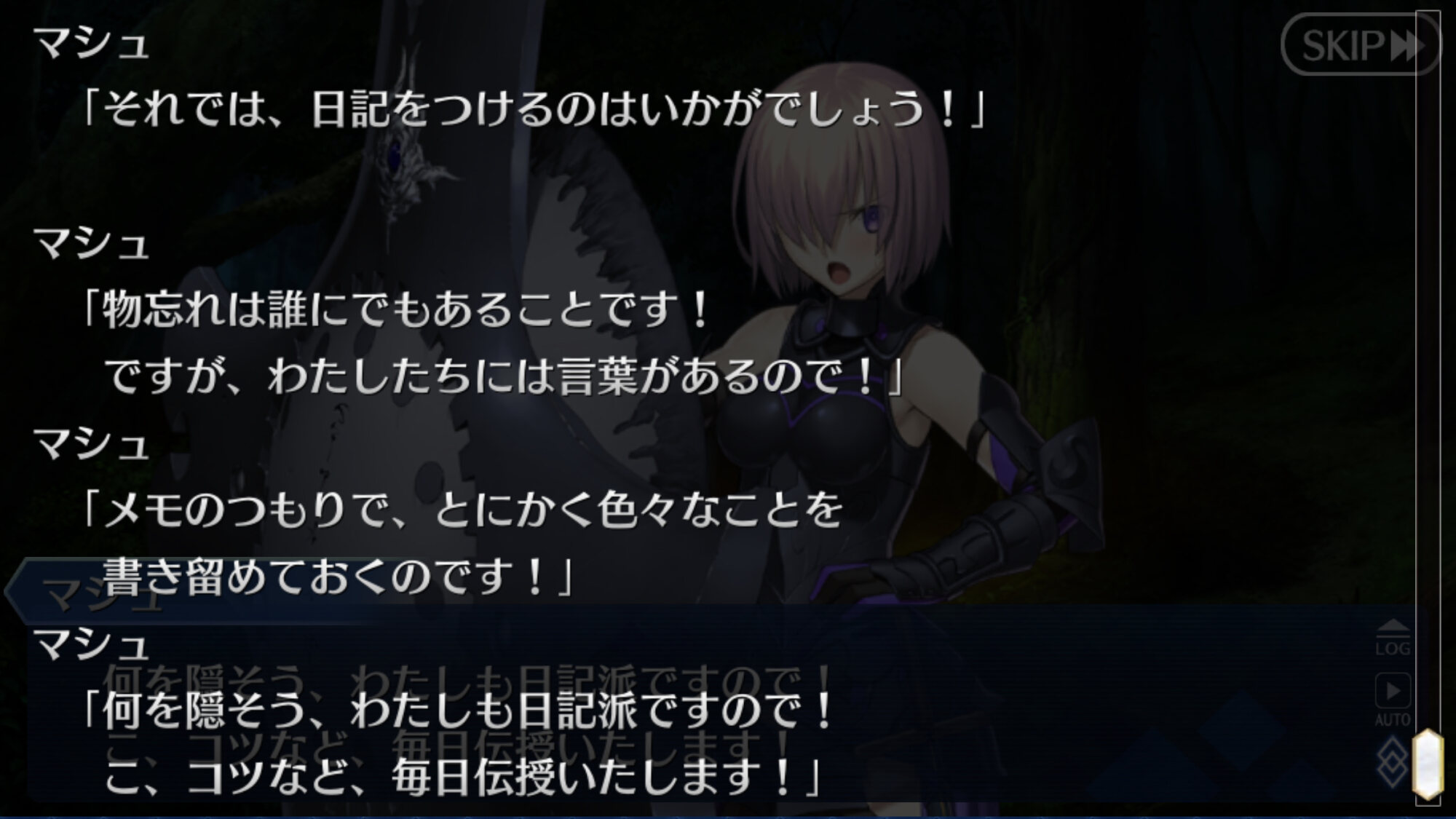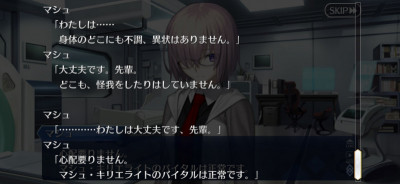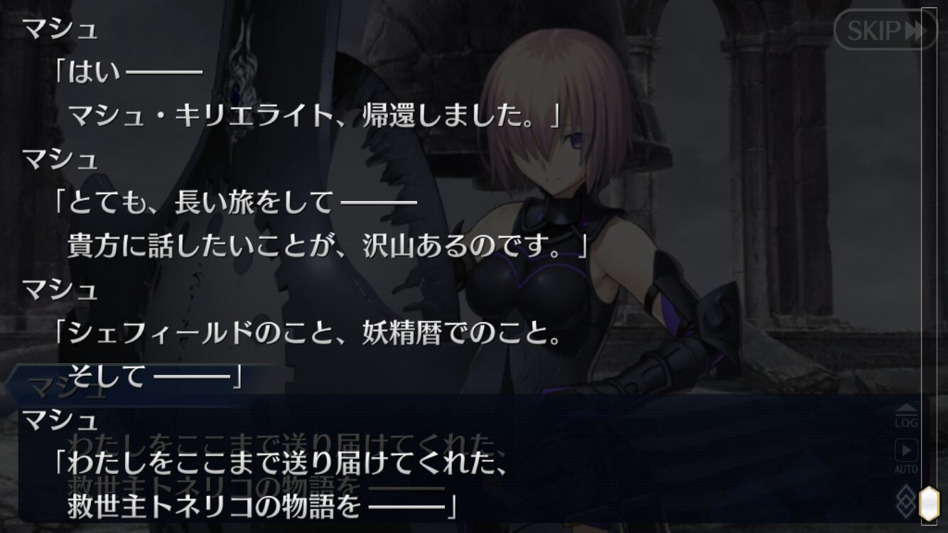 うわあ、そんな前でしたっけ。いいですよねマシュ可愛いし、ダメカも便利だし次の章でマシュの秘密が色々と明らかになりそう。覚悟を決めて覚醒だけじゃなくてシナリオにも深く関わってくるだろうね