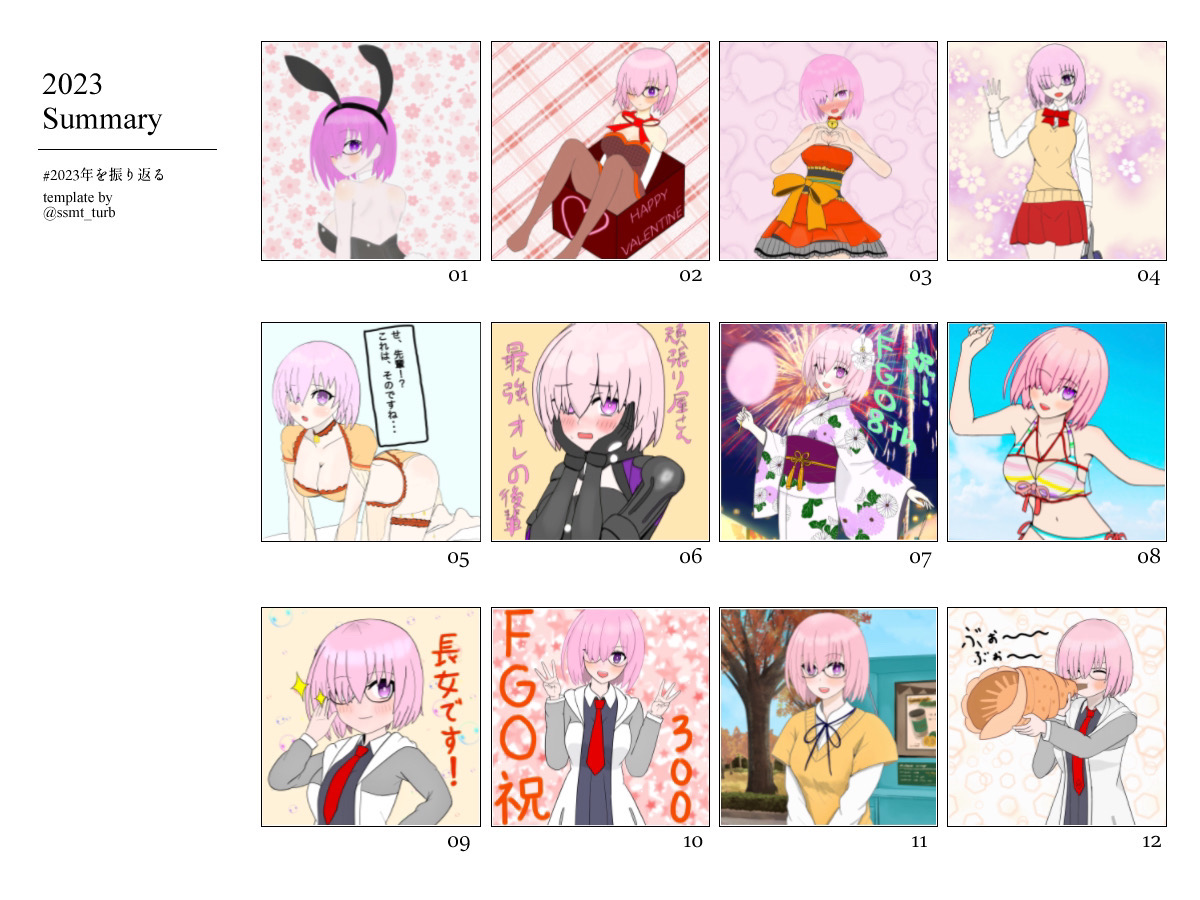 そ、他にも作ってあるけどだいぶ前のなんでちょっと出来がね。機会があれば作り直す予定。最近ある絵師さんのもちマシュが可愛すぎる。