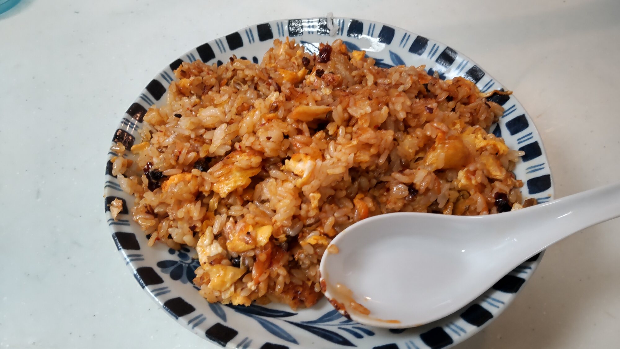キムチとラオガンマ(ユラージャオ)が入っています。辛すぎない良い加減に仕上がりました。人が既にいる場所に、人は立てない