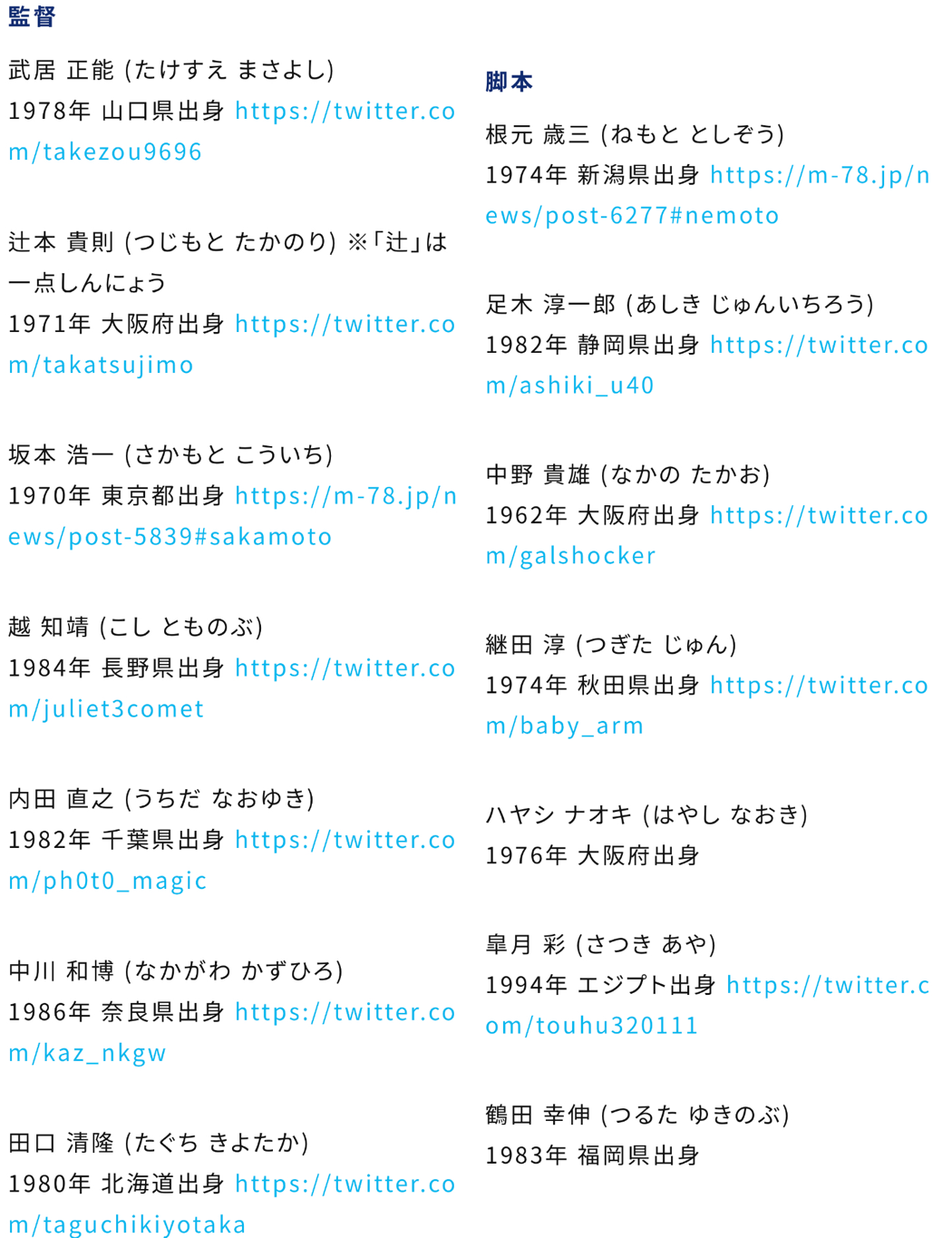 今回は監督、脚本紹介でメインキャスト追加情報はなしか