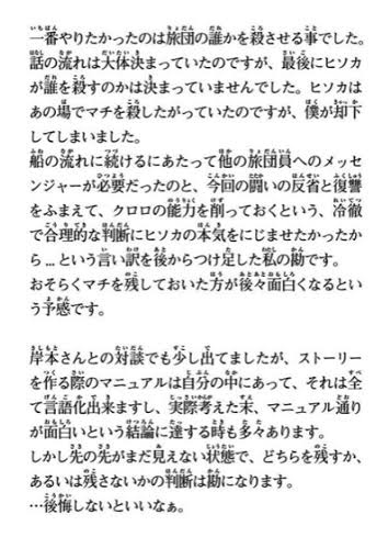 個人としてと、作家としては見解が違うんだろうと聞いてて思った>>924