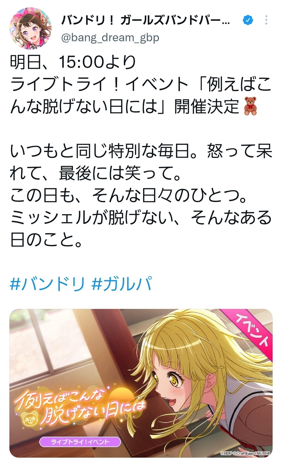 >ミッシェルが脱げない、そんなある日のこと。