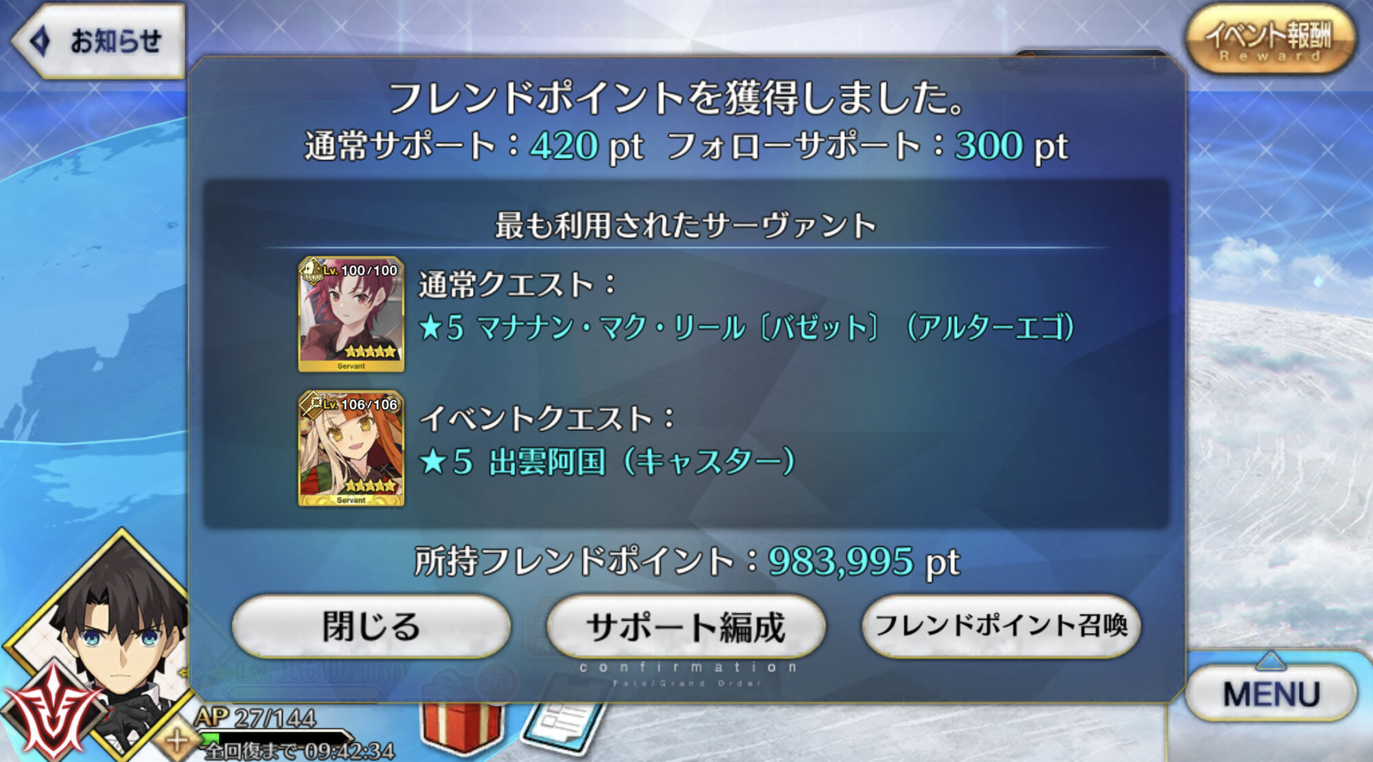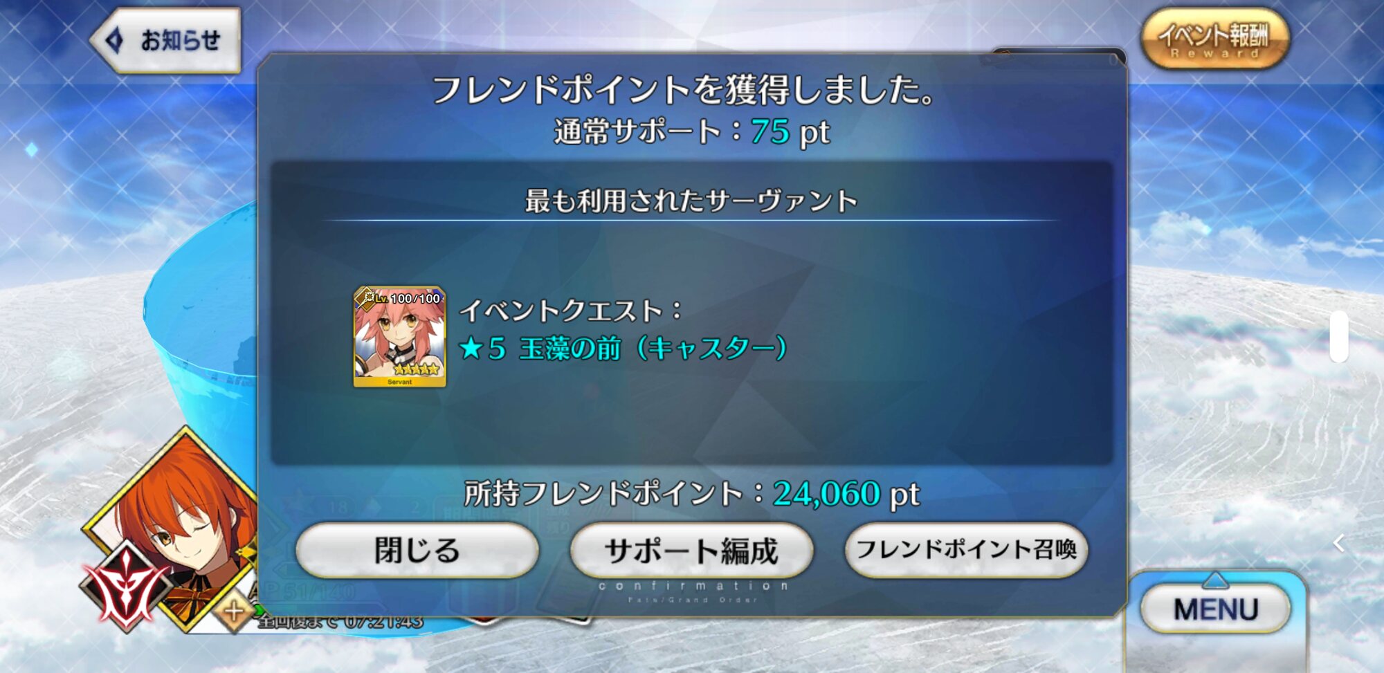 とりあえず、よくではないけど聖杯入れてるせいもあってかメリュジーヌとか玉藻は借りられることがあるかなちょうどタイムリーなもの見つけたから貼っとくね