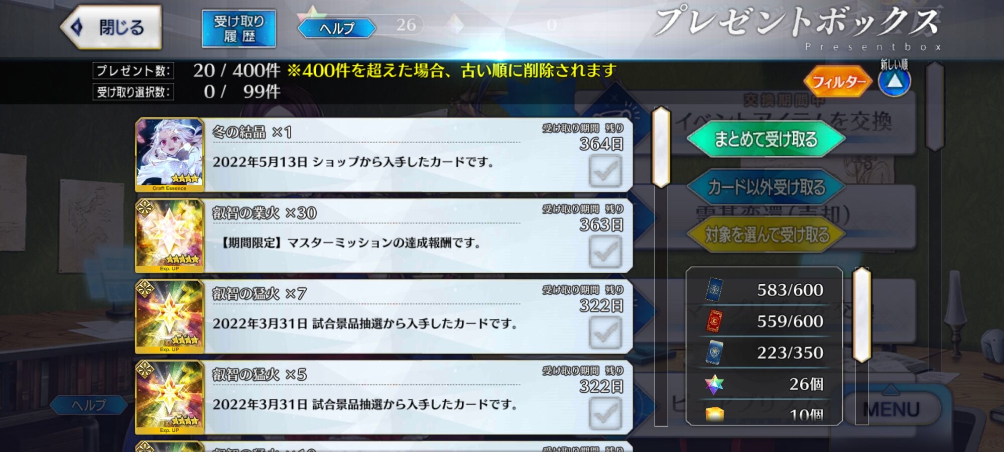 もし私の願いが叶うならば過去のイベントの配布礼装を交換したい・・・