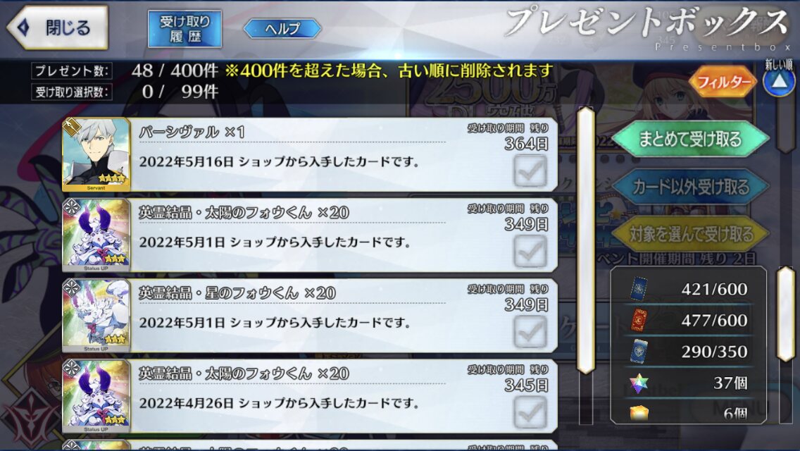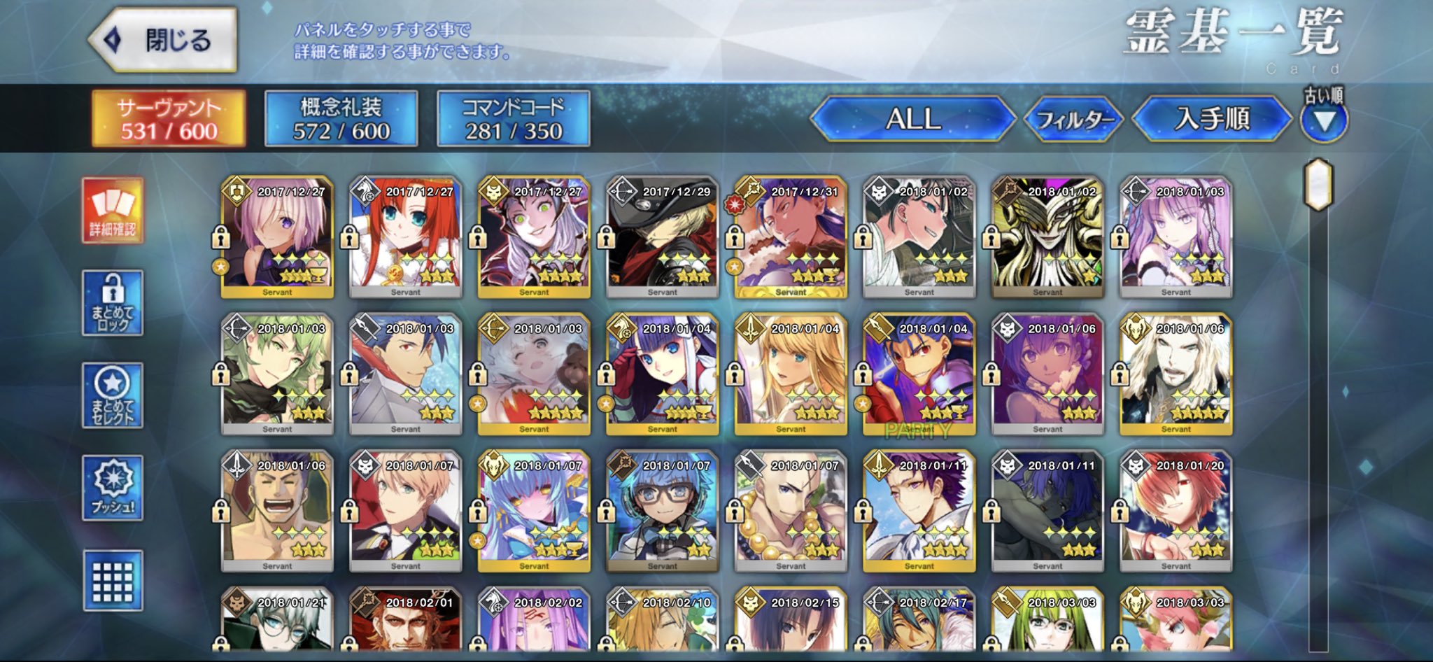 特に集めてもないのに手持ち249騎全部レベルマでこれだけあふれてるのだけど、普通じゃないの?Tales of Fate/stay night