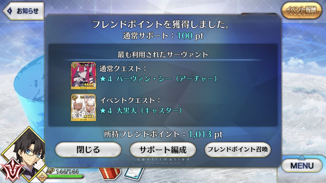 負けイベの区別は消費APを見れば分かるよォ(基本負けは5消費)>>46