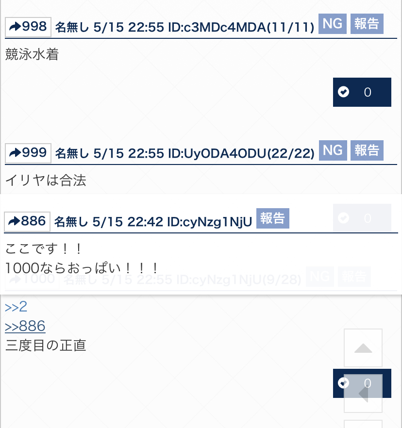 他のレス番被りもなかなか見ないが1000番被りは相当レアもん