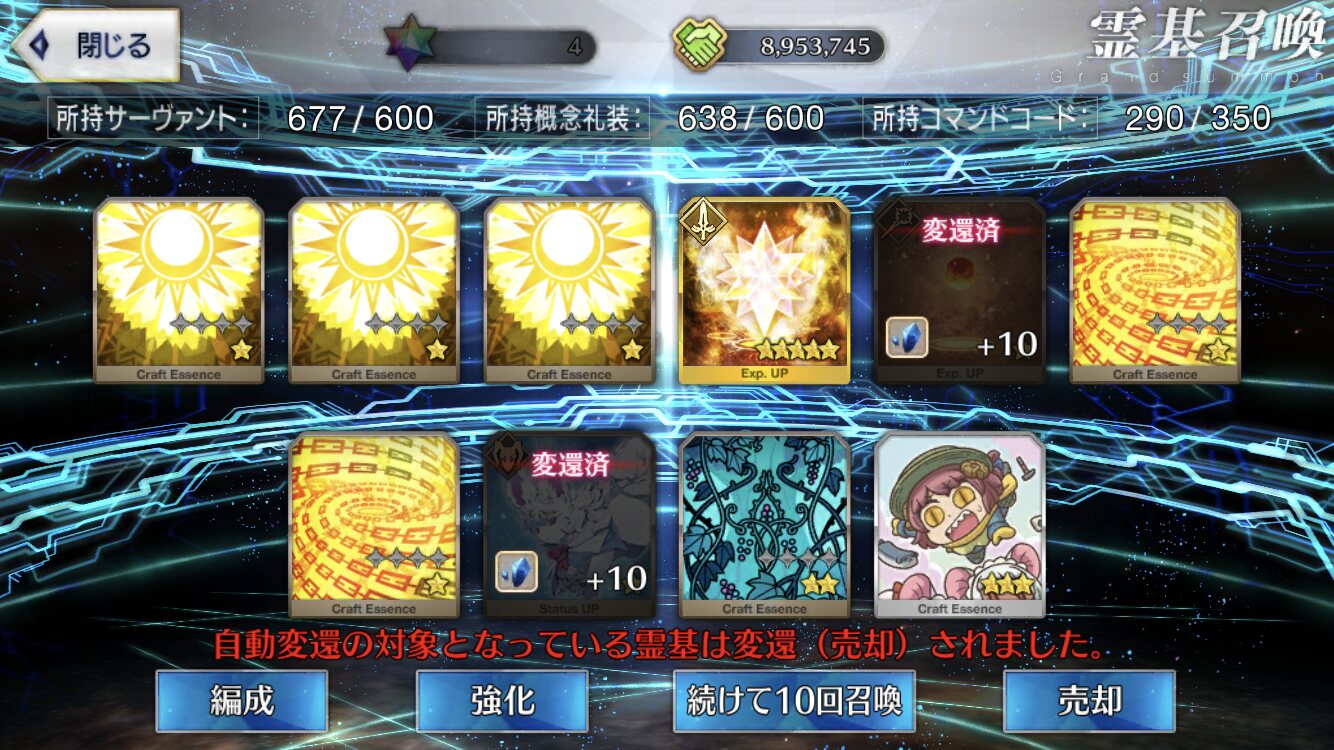 今回は星4チケットの関係もあって交換した>種火おはようございます