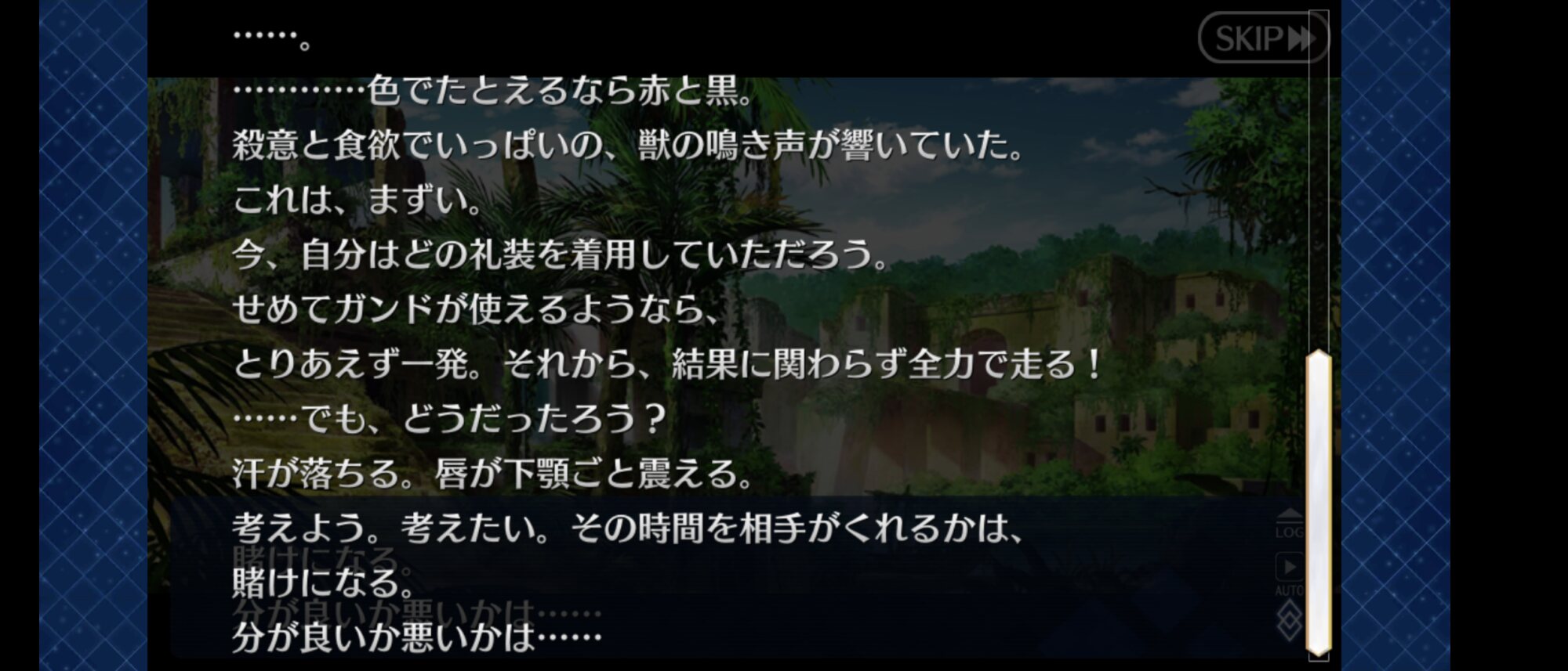 どんどんマスタースキルが使えない時間が伸びていくの、ぐだが命を涸らされ弱っていくのを体感できてゲーム的には面白かったよね(状態的には全く面白くない)>>927