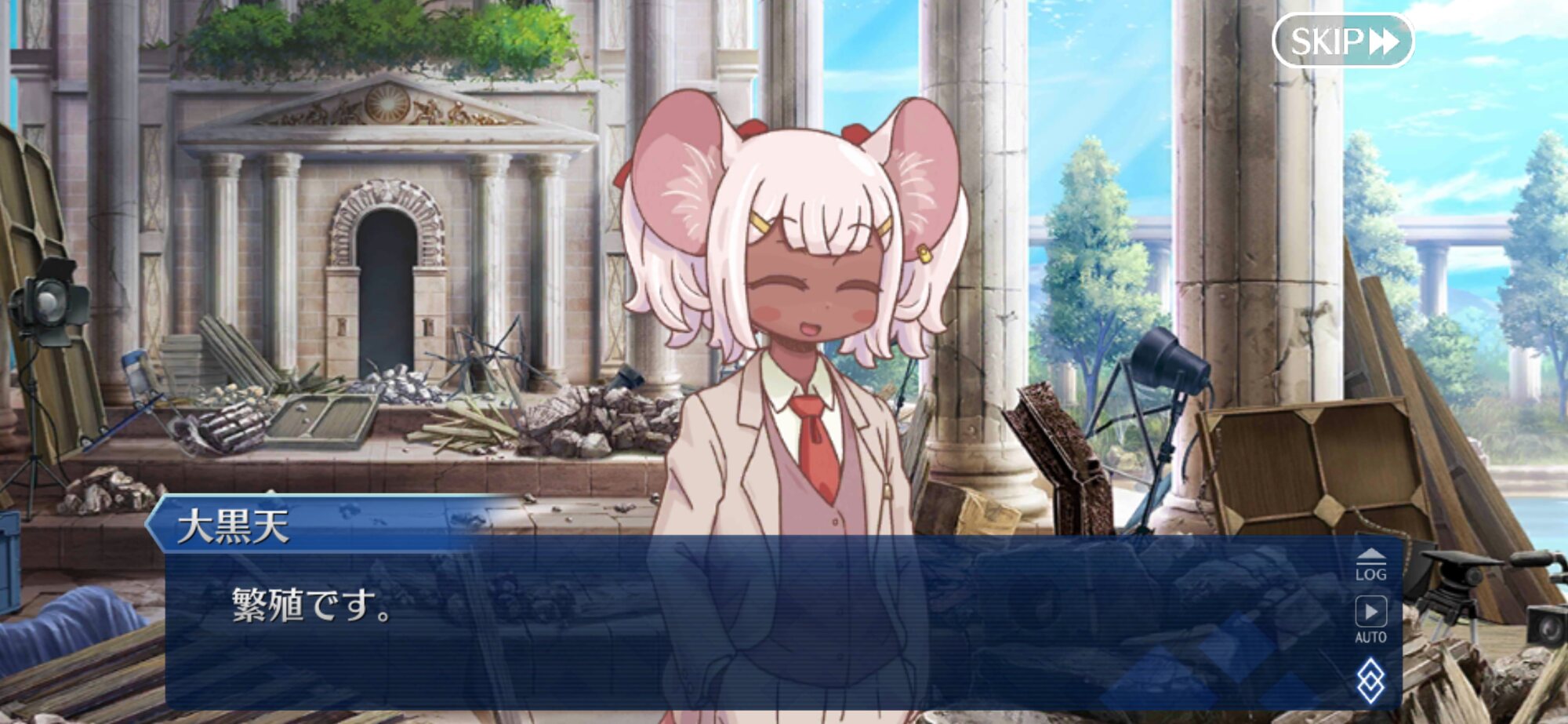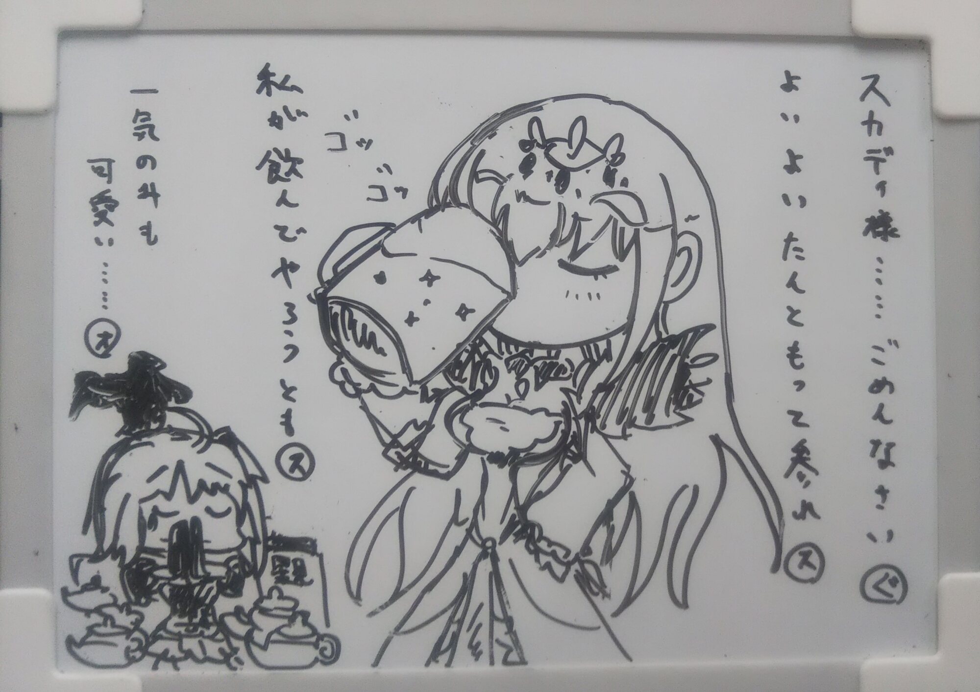 通りがかるイシュタルとパールさん。つまり今の状況を鑑みると、なぎ子さんと身代わりにされたリンボとその分身をお尻ペンペンされてる場面を目撃するイシュタルとパールか、カルデアの日々はかくも混沌であったか。