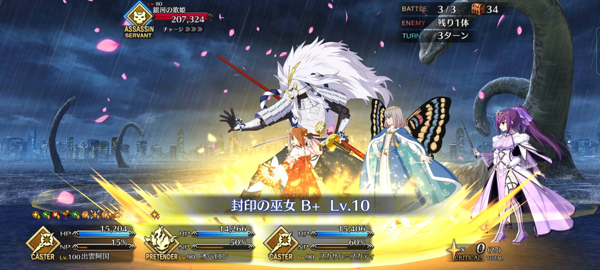 ちょっと遅れたが、阿国さんの宝具もメインの効果はあらゆる魔を封じる大封印結界陣の方なんだぜ!鶴岡さんの演技が光る...声がひっくり返る?あの感じがたまんないですね