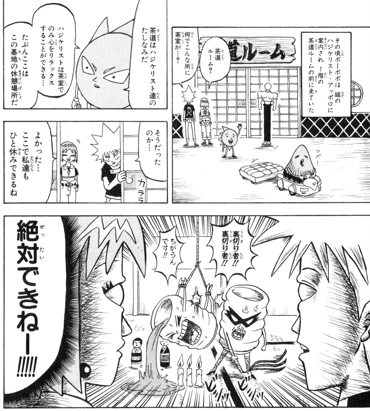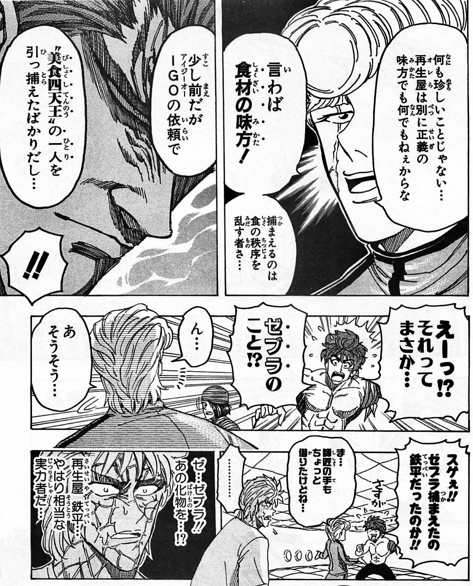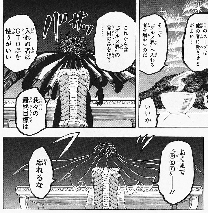 ・そもそも本人が滅茶苦茶強いのだが、直接戦うのが面倒臭いので寄生虫達を使役するスタイル。しかし本気を出すと、とてもマッシブな身体になり、直接殴り合うスタイルになる。その際は当時のトリコを瀕死に追いやった