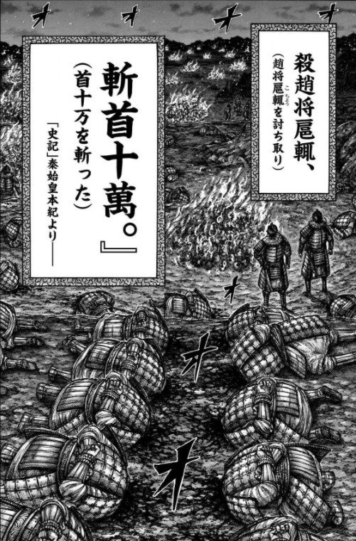 古代中国の話になるけど、キングダムに戦の手柄確認に首を持ってくるって描写があった
