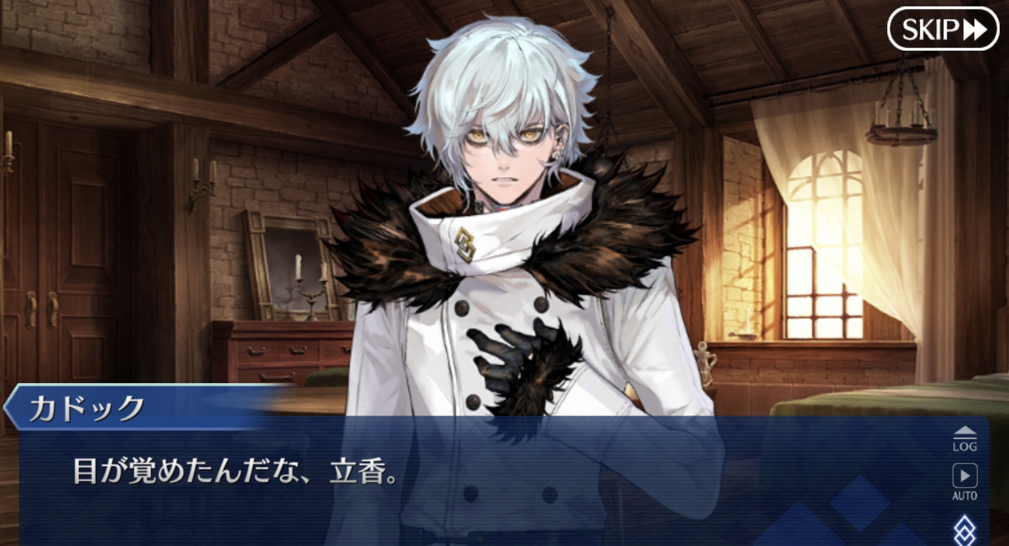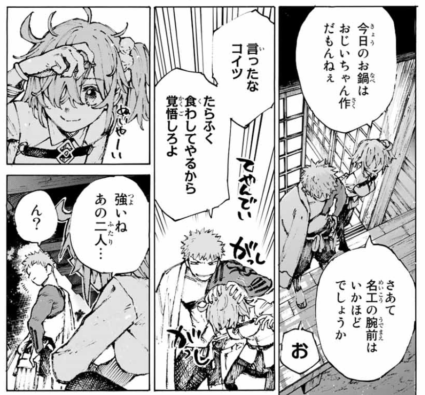 いつにも増して無邪気な顔で為朝を見つめ為朝や為朝と戦うジークフリートのすごさを語るお栄ちゃんを、ジークフリートはほっこりしながら見つめて相槌をうつ