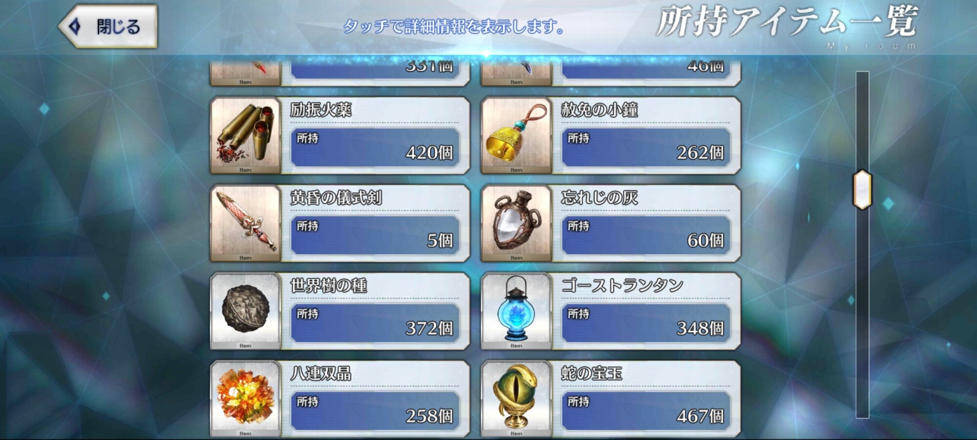 ……勲章かあ、あれ6章からの素材なんだよねえ……ピュアプリズムっていう白い奴貰ってない?ショップ→ピュアプリズム交換で手に入るよ。再臨分だけ確保しておくのがいいかもね。>>55
