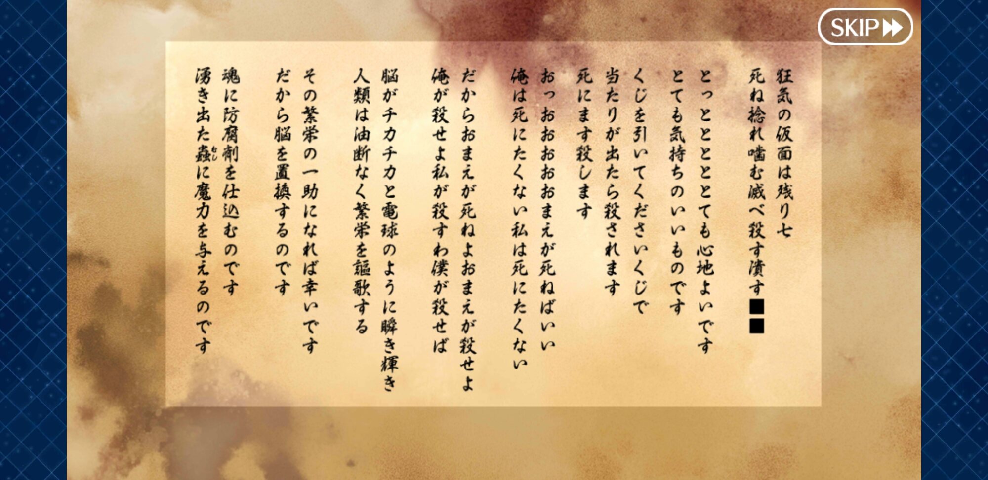 もう一回再臨してこうなるなら聖杯17個ぶっこむわ!個人的に一番ホラーなのは、2部序盤に出てきたE君の体験談