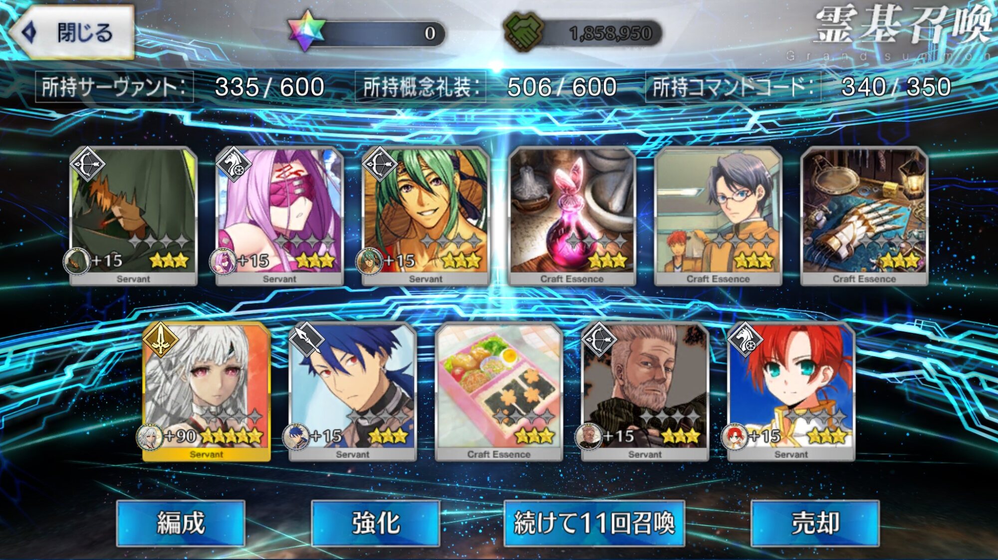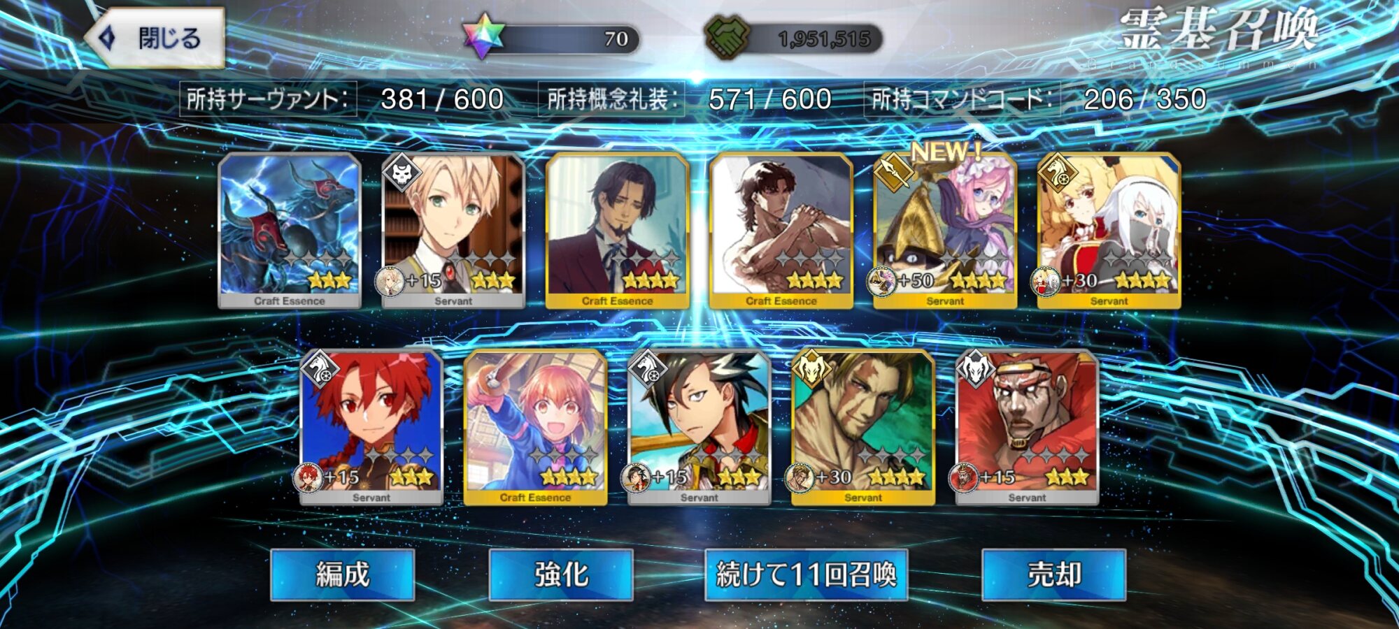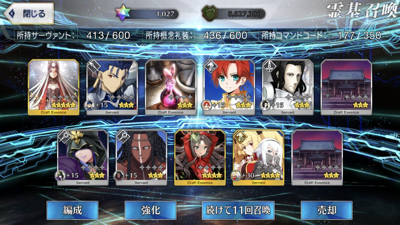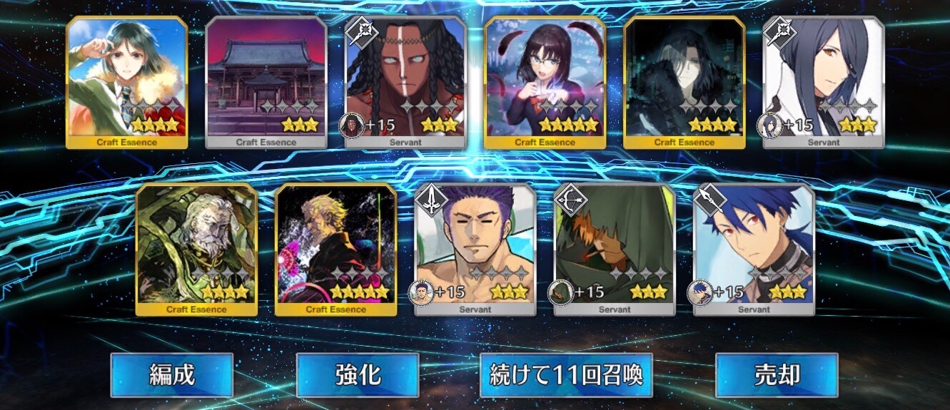 任務…了解…。(自爆スイッチを押す)特別再臨を新入りの2人に使うか無料の☆5の子に使うか…新素材がなぁ…