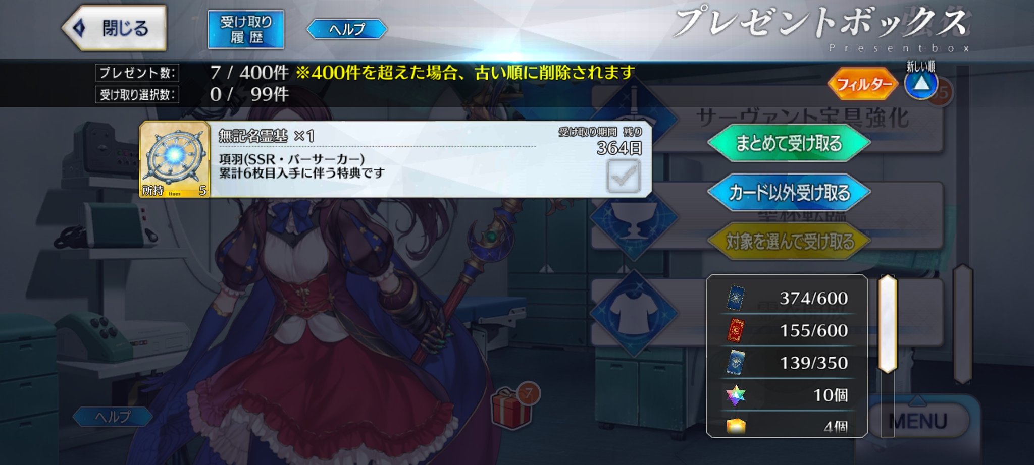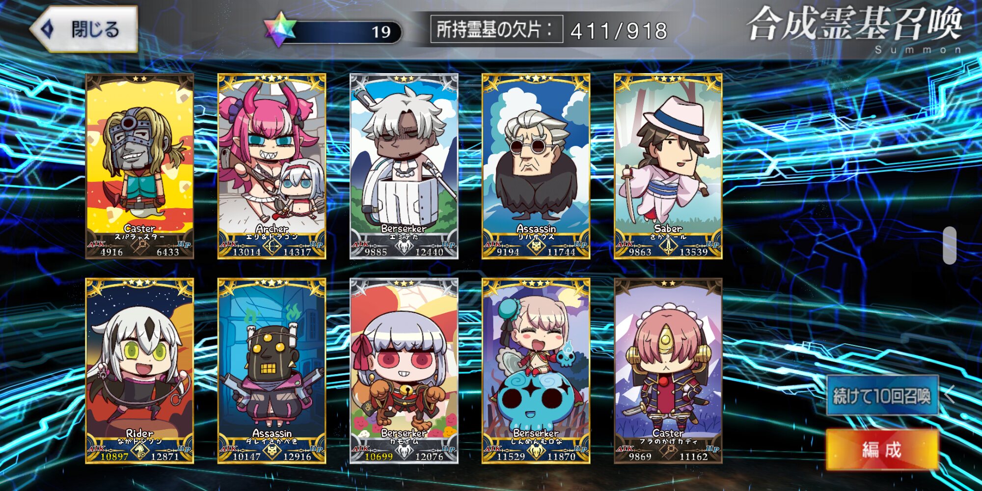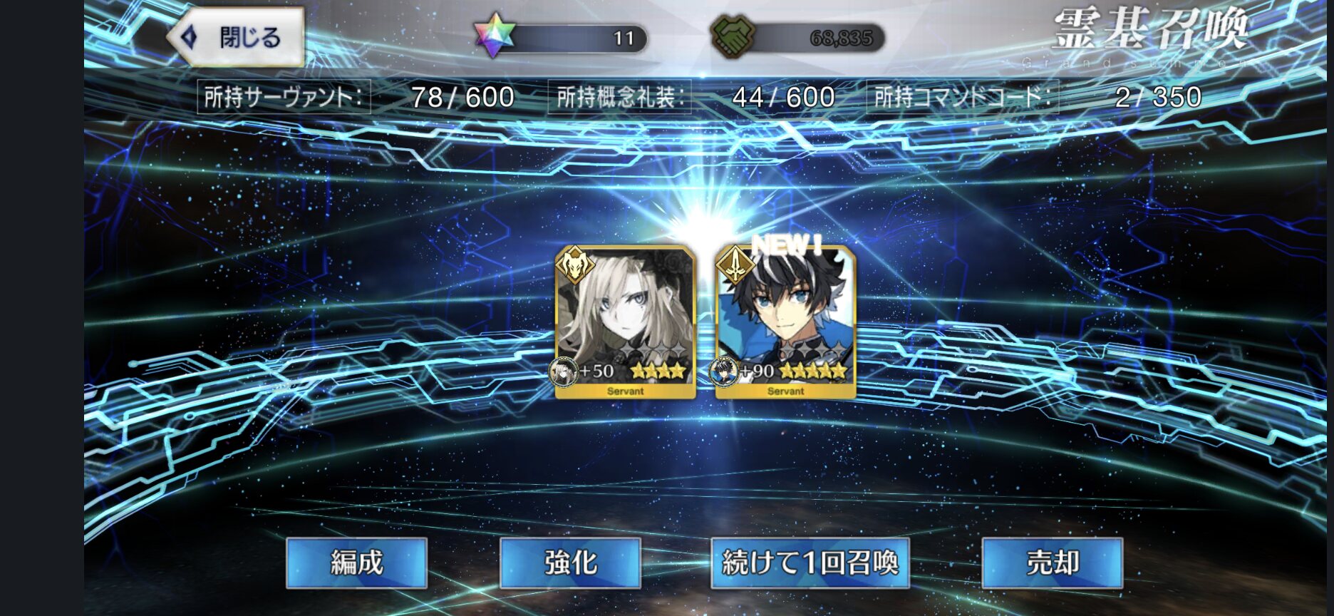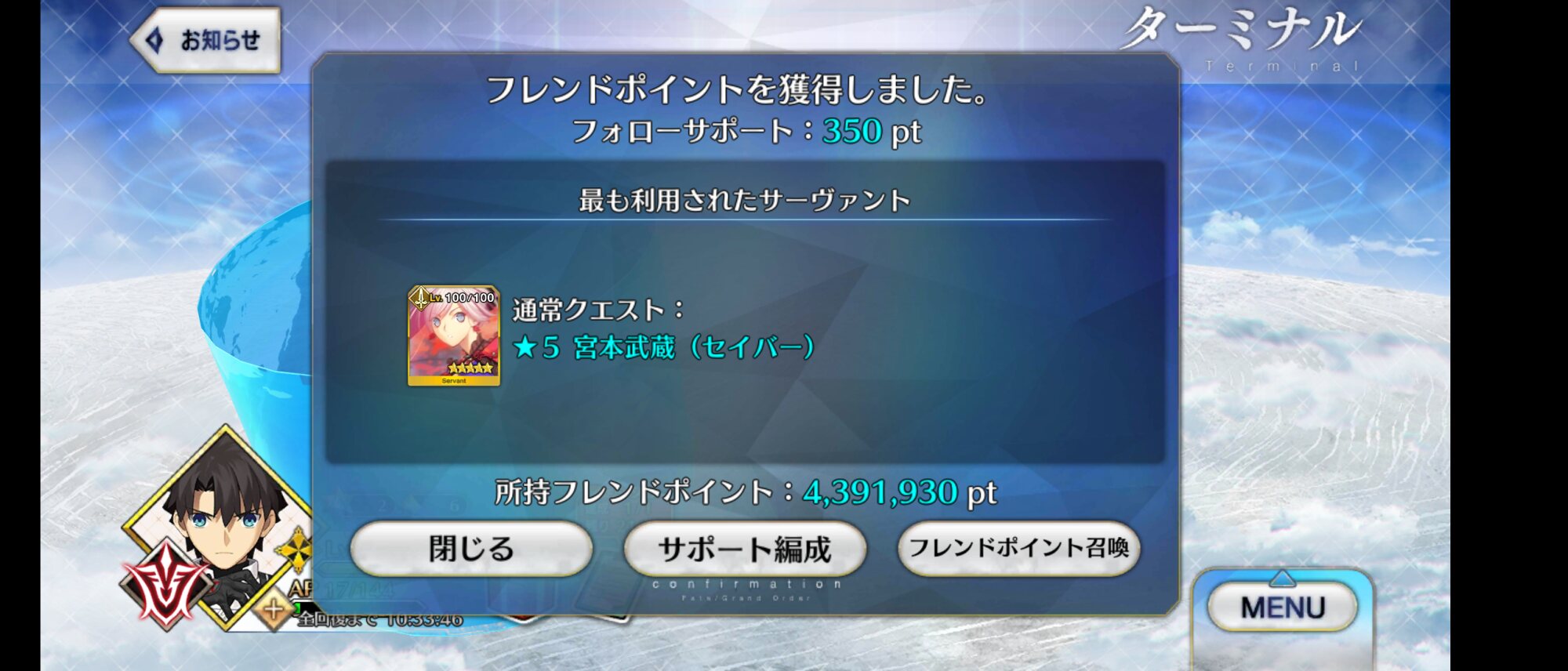 任務…了解…。(自爆スイッチを押す)特別再臨を新入りの2人に使うか無料の☆5の子に使うか…新素材がなぁ…