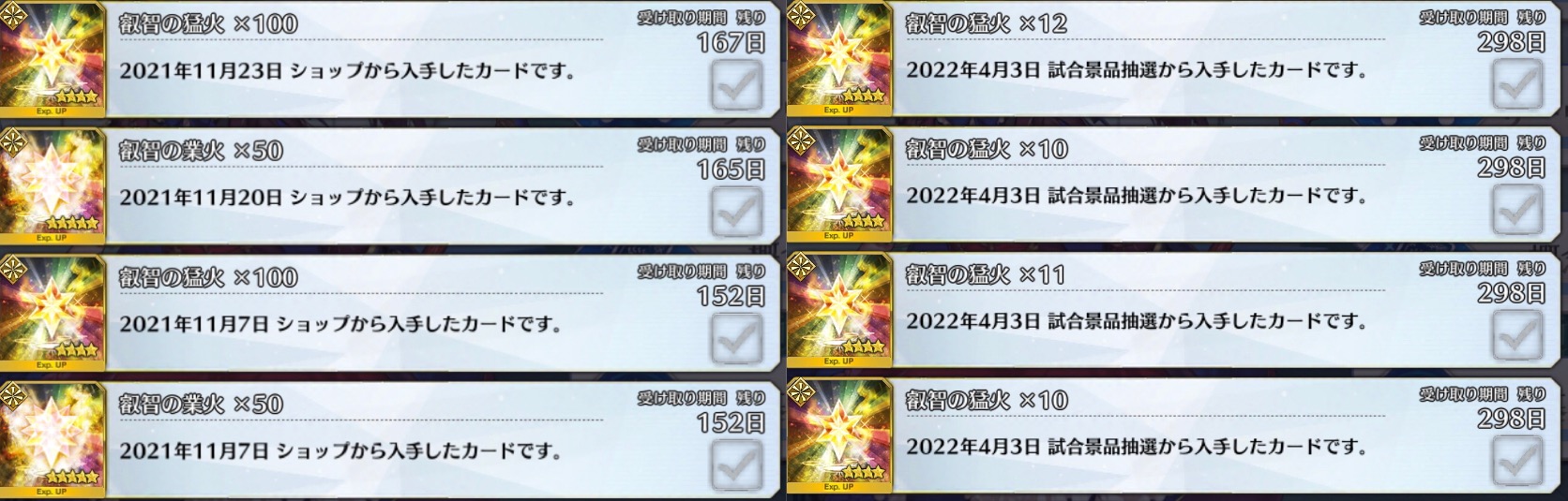 ねえ!アラフィフどう思う?!うーむ星5種火売るまでするほど飽和してた自分の種火(オール星5を除いて)貯蔵が尽きるとは。