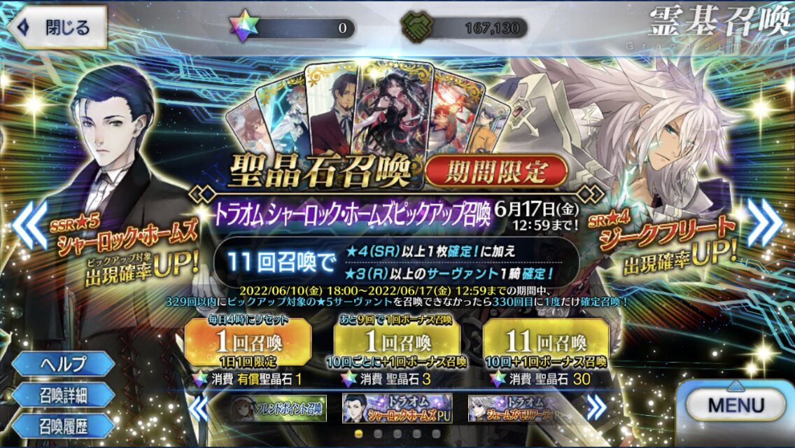 ばーか!ばー--か!(なけなしの石で引こうか思案中)ホームズとすまないさん強化来てるね