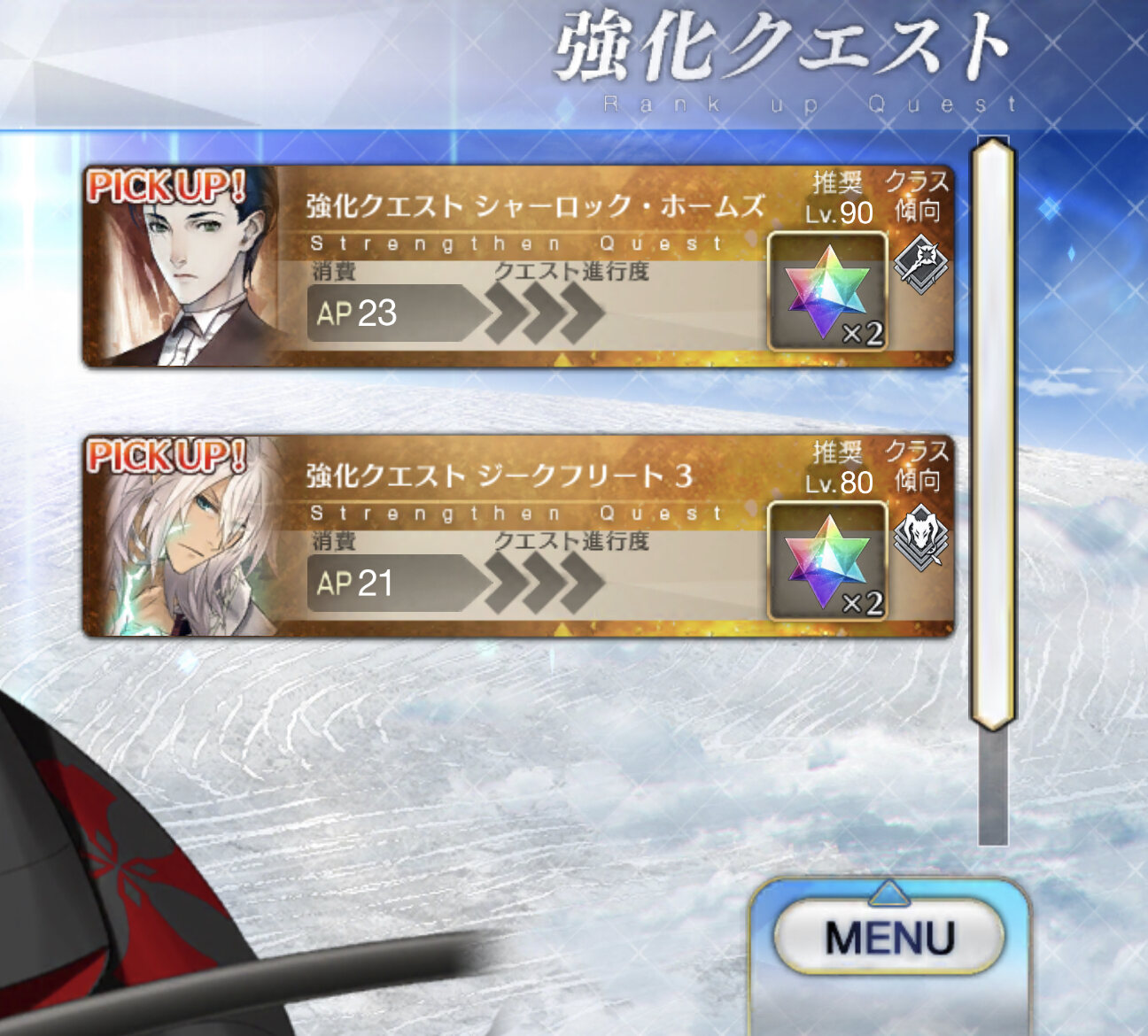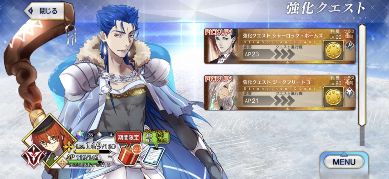 2人の強化クエ来てたりする?若森をもうちょっと引っ張って代わりにホームズがピックアップされるんじゃないかという予想もあったがこう来たか~