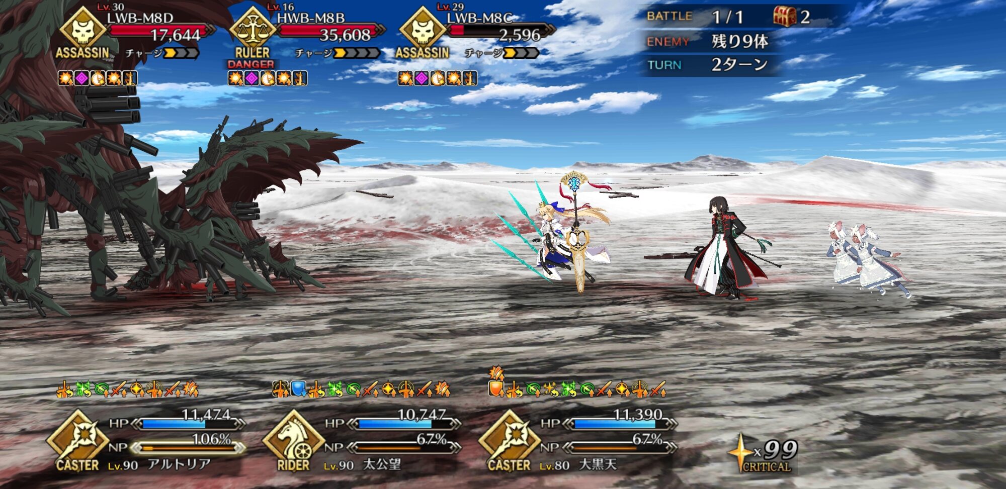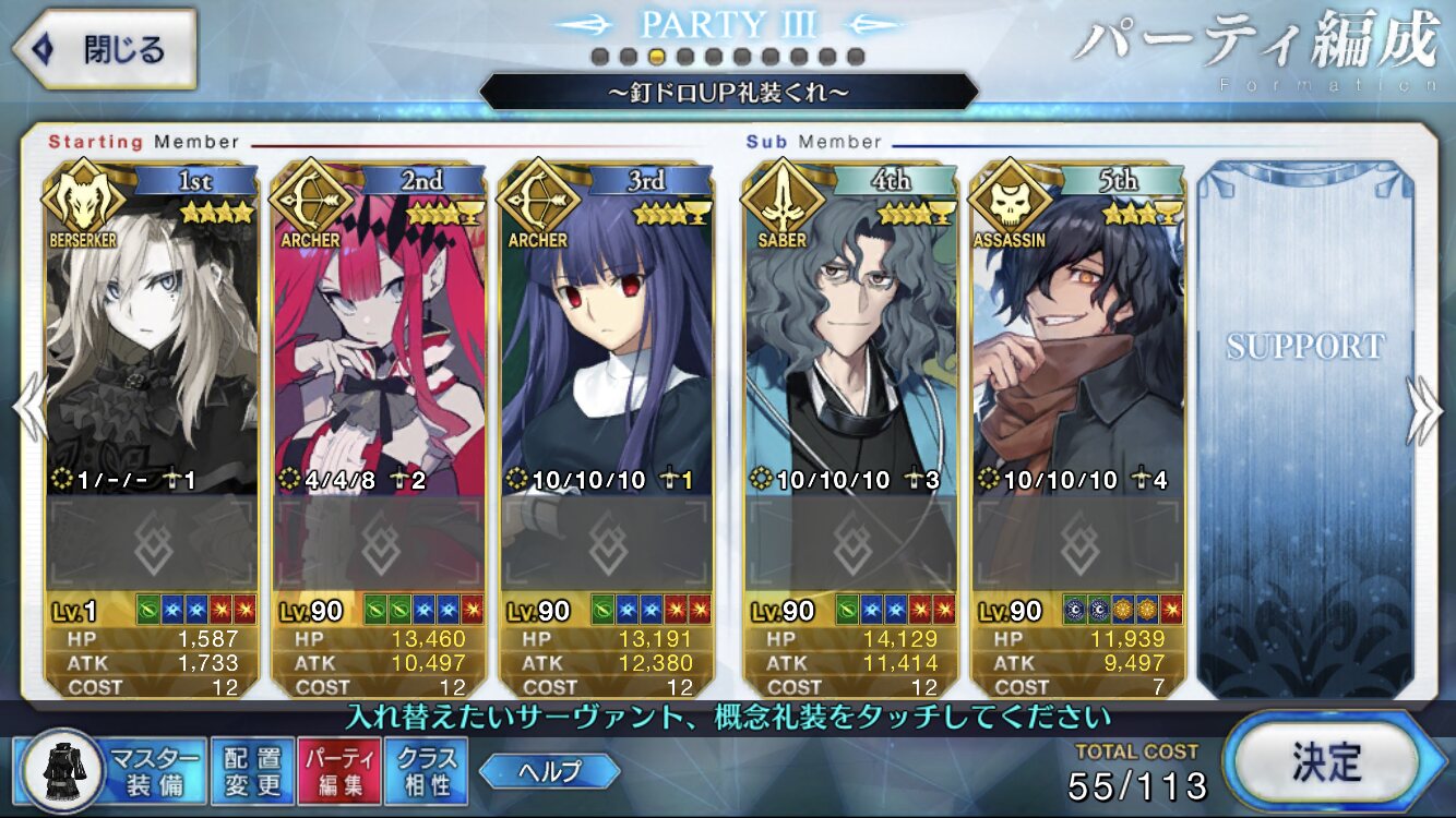 相性いいぞ。これで(礼装とかクエストとか多少縛りがあったりするけど)工夫すると3連射できる。少なくともトラオムの3-3-3はこれで3連射してた。>>6