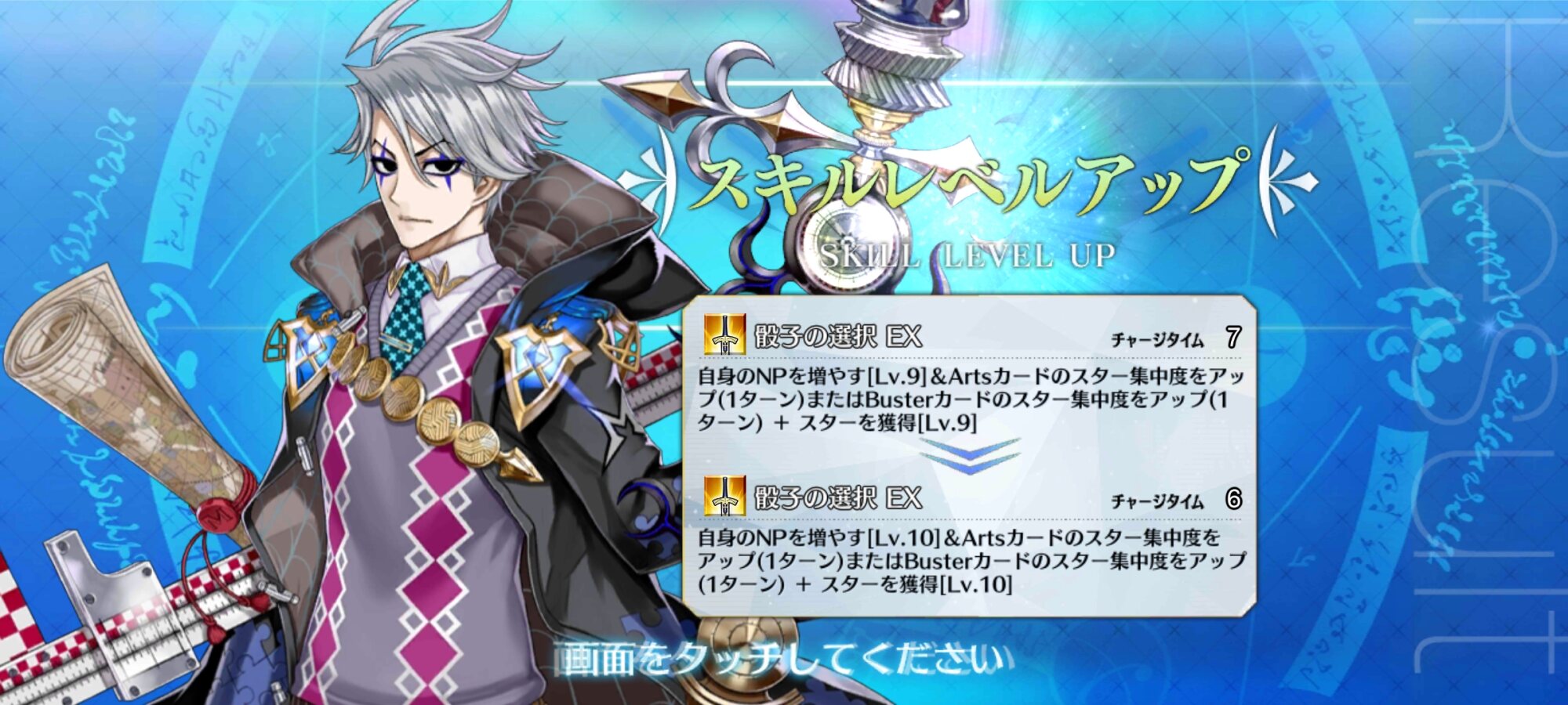 スキル2『聖騎士帝』味方全体に攻撃力アップと自身への魔性特攻&神聖特防を3Tずつ付与+NPチャージ。貰えるNPは最大で30とそれなりだから優先して育成なさい