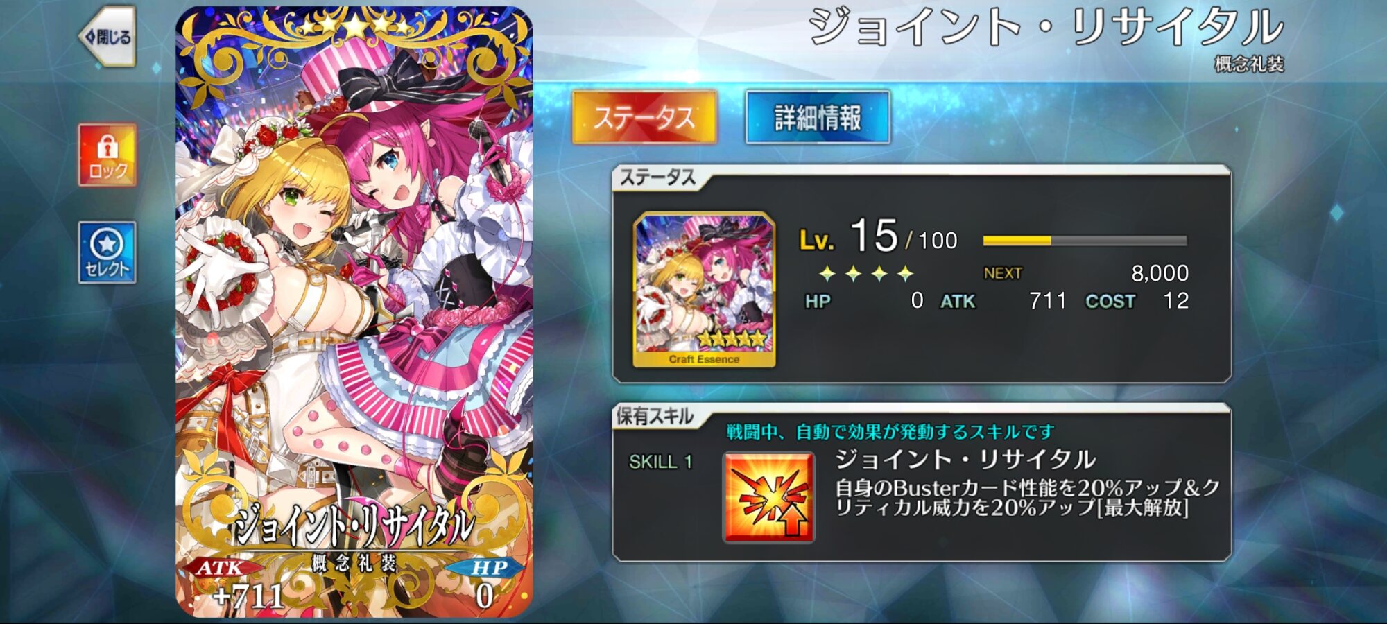 礼装は無難にQ性能や宝具威力を上げる物や王勇を貯めやすいタゲ集中系礼装を推奨。私のオススメは『クリスマスの軌跡』