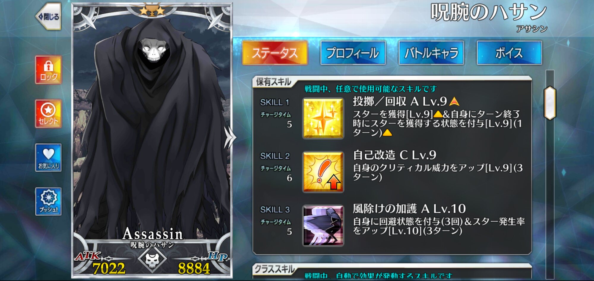 スキル3『魔力放出(光)」自身のQ性能とクリ威力を3Tずつアップ。倍率は両方30%と3T持続する物の中ではかなり高め。更に悪属性に対してクリ威力を最大で50%増加