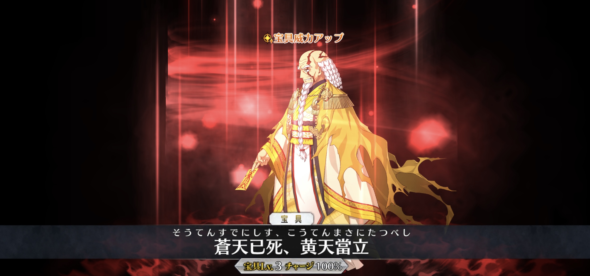 宝具は全体Qで【王勇】1個につき10%威力が上昇&ダメージ後にQ耐性ダウン3Tを付与。前述した王勇の使い道であり、Qダウンもつけられるから撃てば撃つほど威力が上がるわ