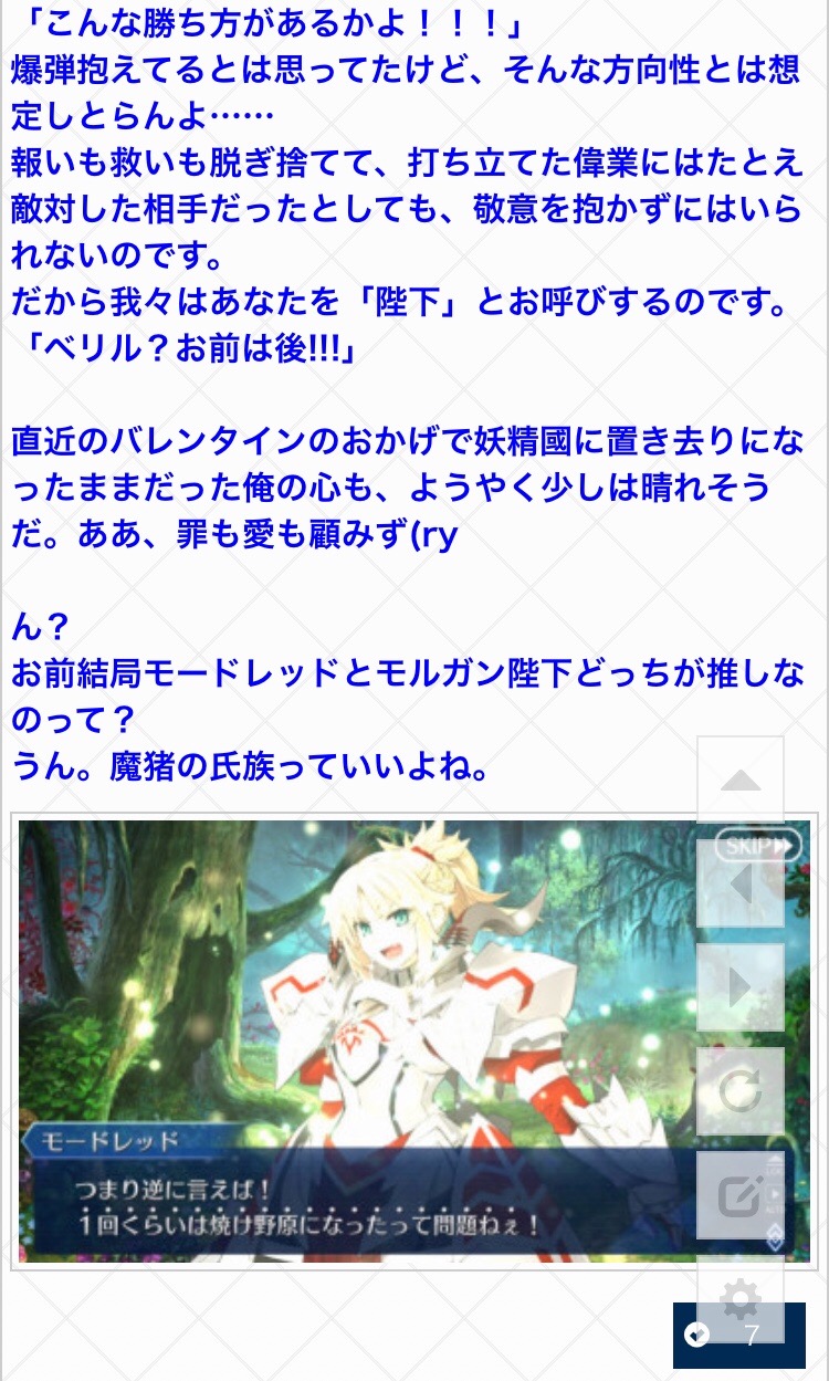 本当にまだまだ先は長い(ネロ玉藻EXTRA、CCCネロ玉藻ギル個人ルート、CCC全鯖CCCルート)けど楽しむよ〜!でもEXTRAは一回戦と三回戦でメンタル削られるのが確定してるから休み休みやるね>>930