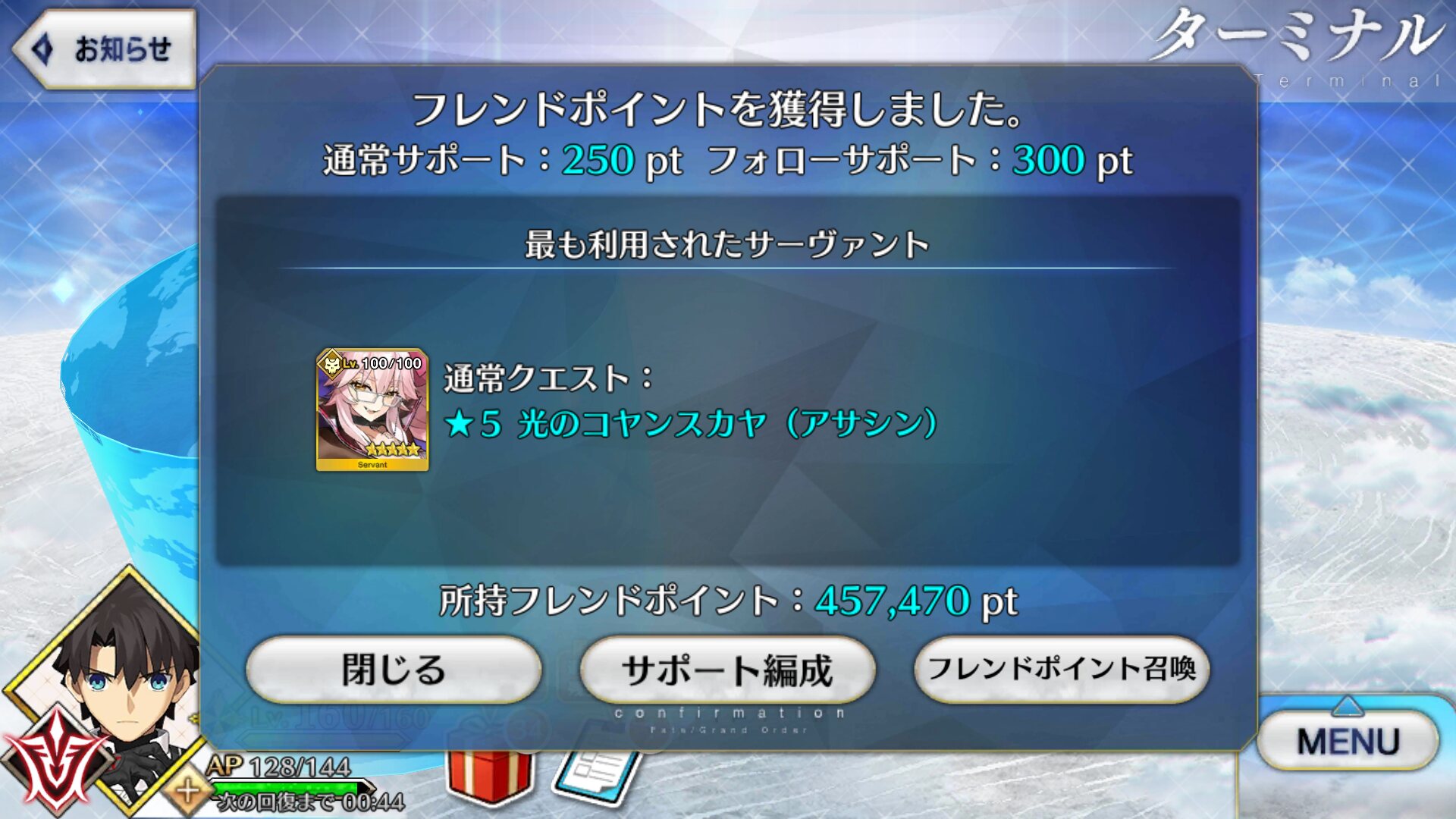 たまに自カルデアにサーヴァント実装されない不具合有るらしいから注意な