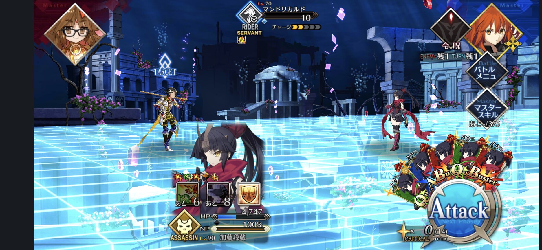 工夫や繰り返しやれば行けるものなのだなー。使い捨て前提の運用されやすいアサシンにとっては優しすぎる労働環境、カルデア