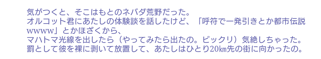 程度は異なれど、友と同じく性別とか体型とかを自分の意思で自在に変えられるスキル持ちだし、面白い存在として目を掛けてくれていたら嬉しいなぁ>>940
