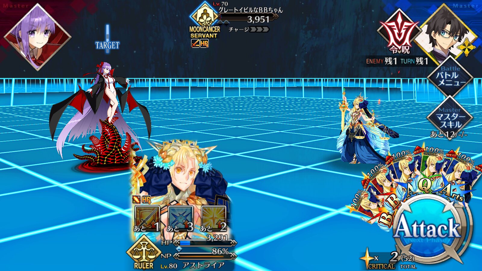 左側は一応アストライアさん温存してイリヤ、ラクシュミーさん、邪ンヌでバサスロや普通のBBちゃん達に対処しました
