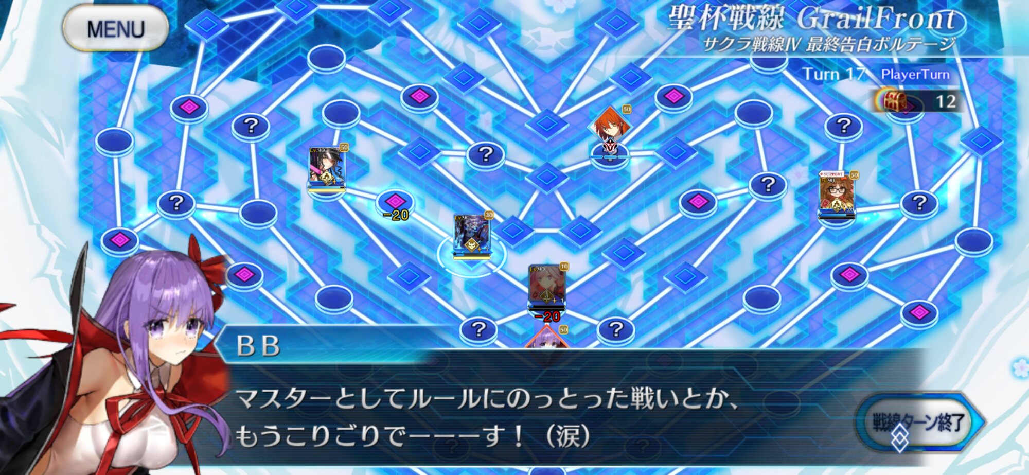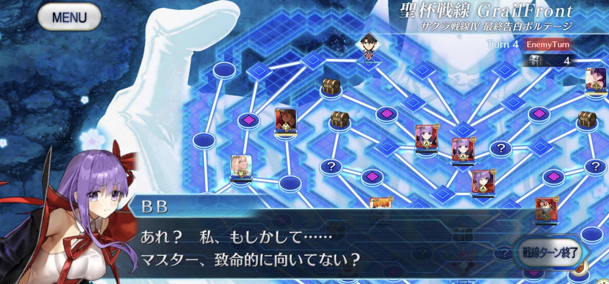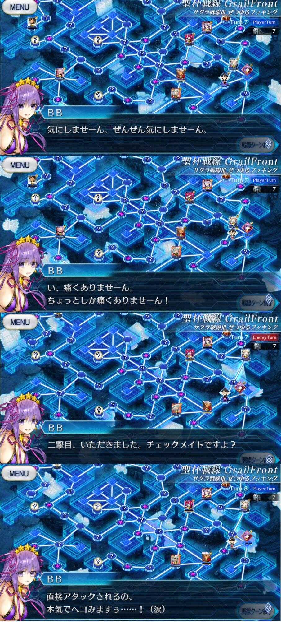 5~6ターン目、中陣に向かってくる敵とリップを排除し終えるとBBちゃんの弱音セリフ