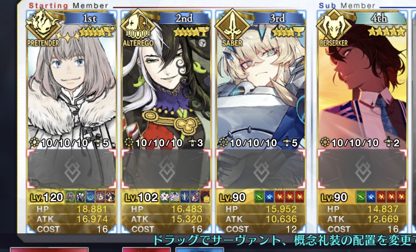 最初のアルターエゴ2騎が倒せずそのまま全滅する
