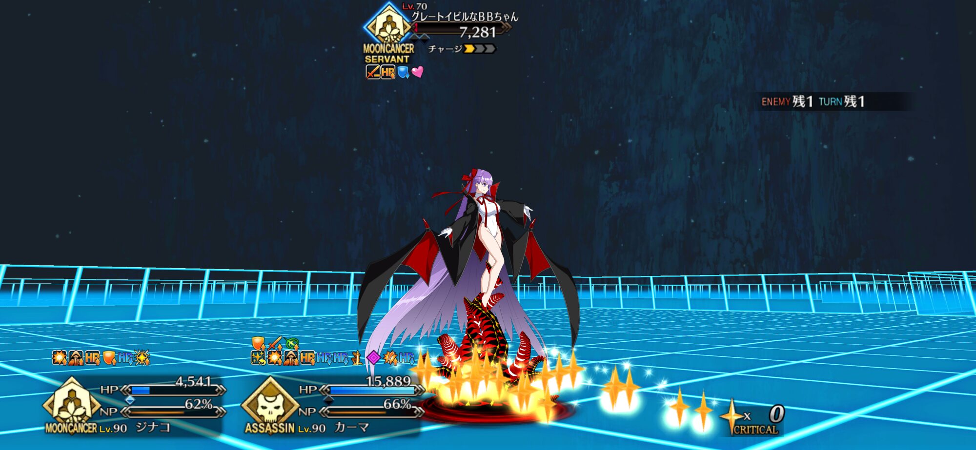 自分も封鎖役として水着カーマ巻き込むマスにジナコ単品で置いたけど、防御有利被ダメでNPくれるからむしろ巻き込む方が便利だったよね